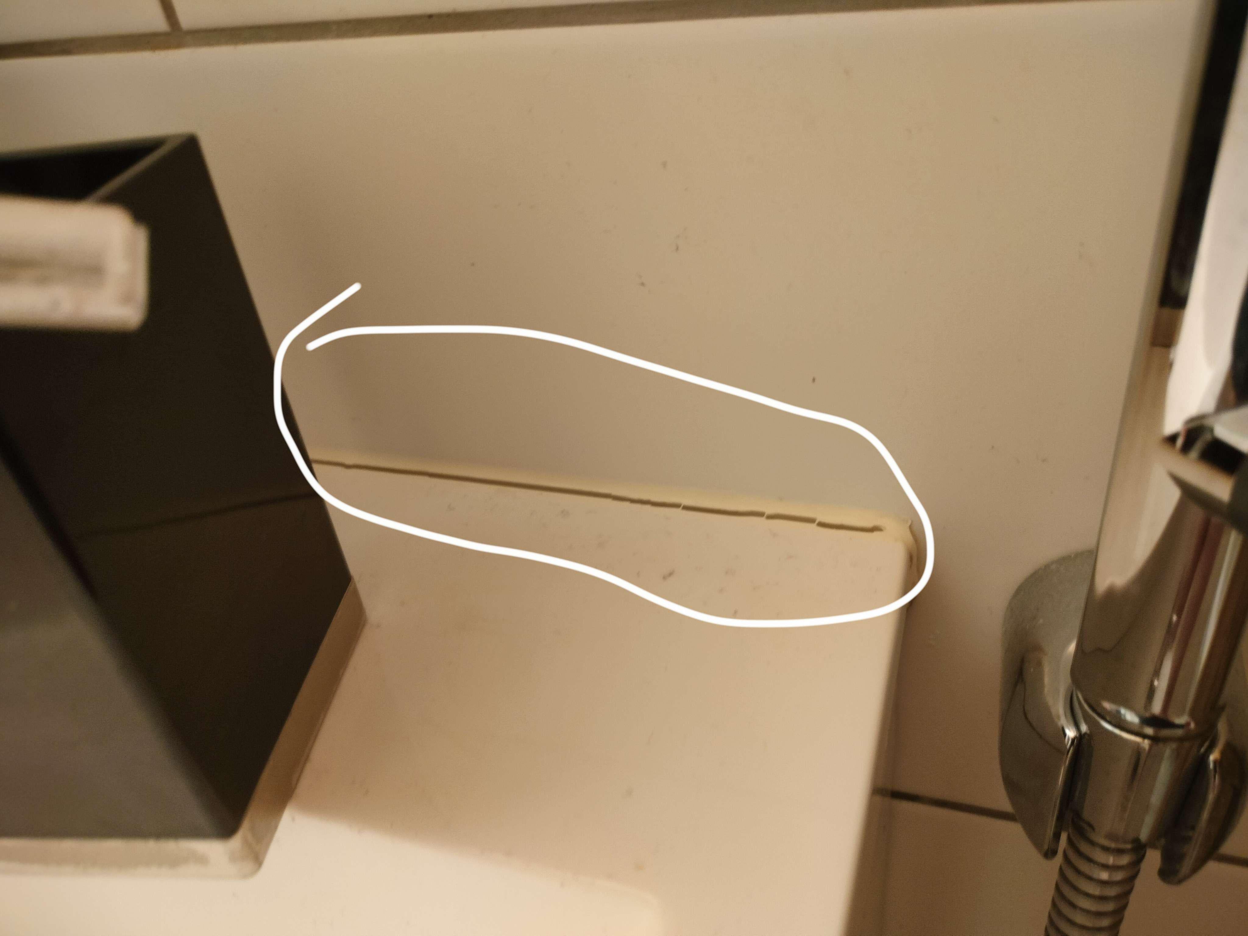 Das passiert an der Spüle und sie geht kaputt, also kann ich jetzt im Grunde ein Papier in diesen Schlitz (den grauen Bereich) stecken. Ich habe es der Wohnungsbaugesellschaft gesagt, sie meinte, ich solle an FIMX schreiben, das habe ich getan, FIMX hat nach zwei Wochen nichts gesagt. Ich denke, dass hier eine ziemliche Schimmelgefahr besteht, vor allem im Inneren, da es jetzt aufgebrochen ist. Was muss ich kaufen, um das Problem zu beheben?