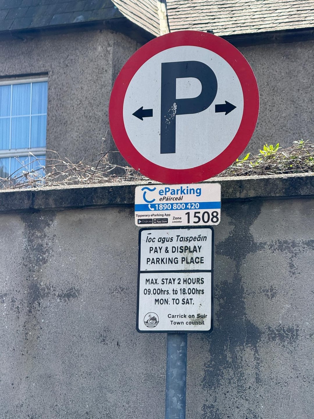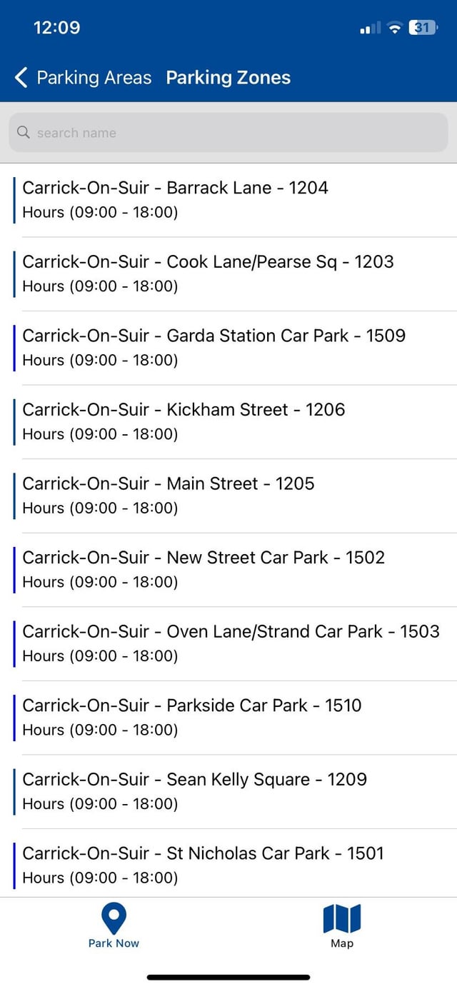 In Carrick-on-Suir. Nicht von hier. Geparkt. Habe die App heruntergeladen (laut Schild). Es gibt keine Zone 1508. Sie existiert nicht. Ich musste raten und Zone 1208 verwenden und hoffen, dass es in Ordnung ist. Warum sind alle Regierungs- und Rats-Apps völliger Mist?