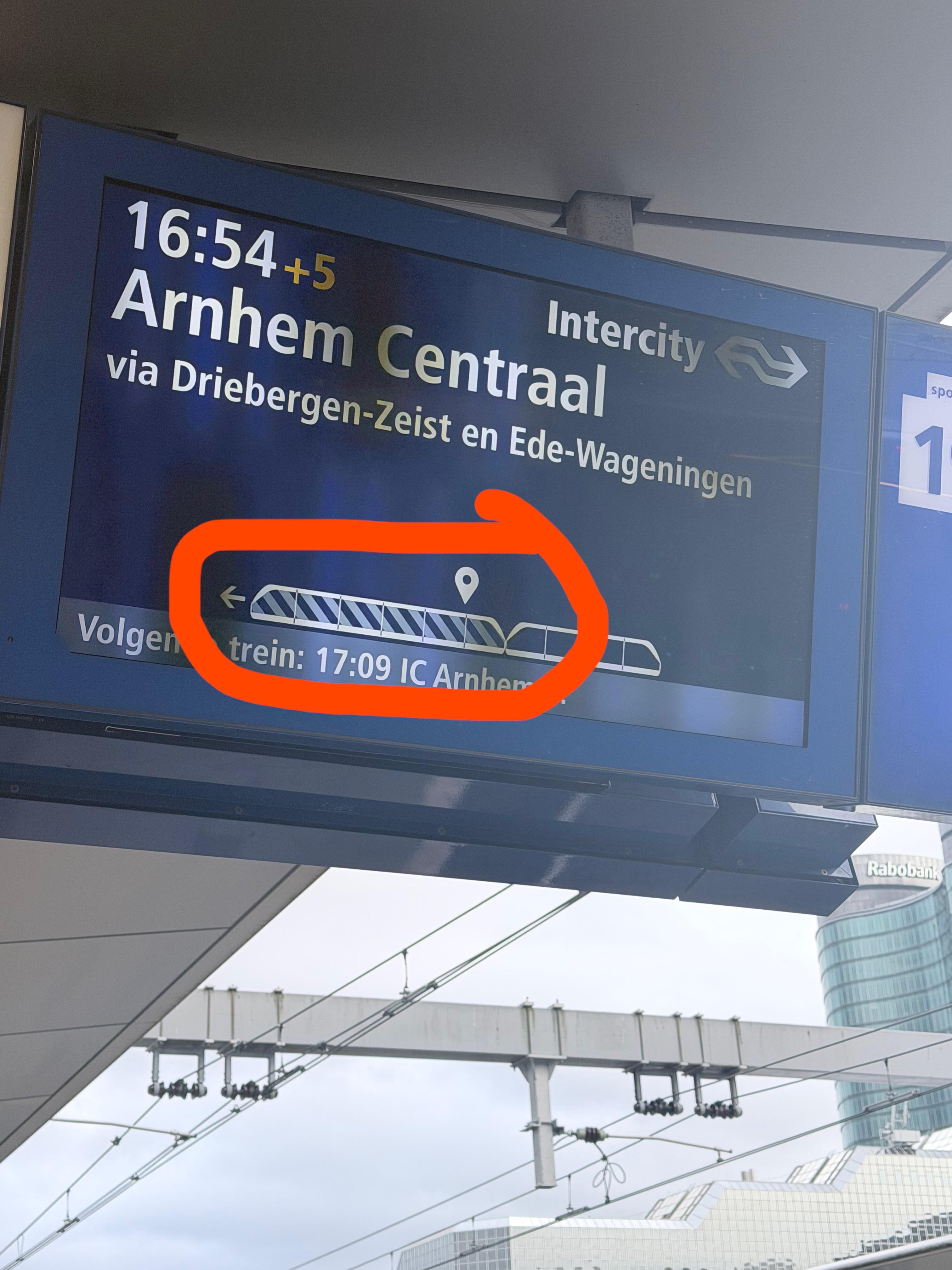 Het linker deel stopt in Ede en het rechterdeel stopt in Wageningen.