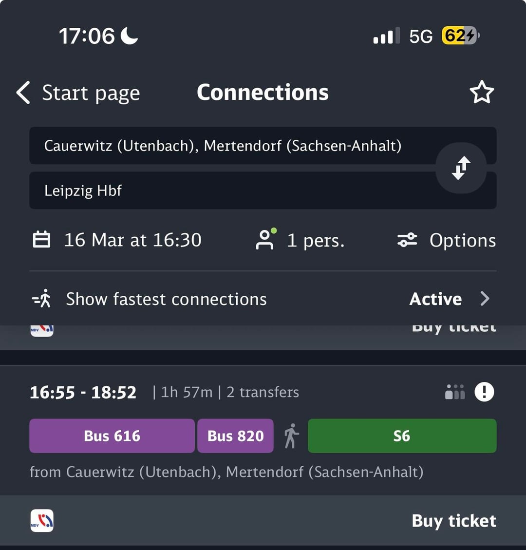 Es gibt nur eine Fahrt, die ich noch am selben Tag zurück nach Leipzig unternehmen kann.