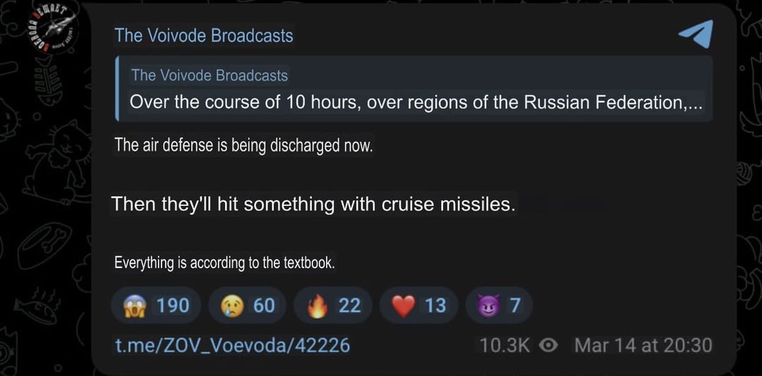 I’ve literally seen 0 evidence of these 100 drone swarms that the Russians keep claiming.