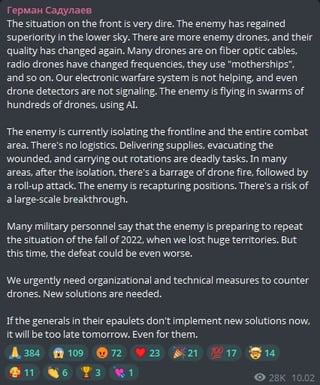 I mean, Ukraine just destroyed a bunch more Pantsir anti air systems, FROM THE AIR.