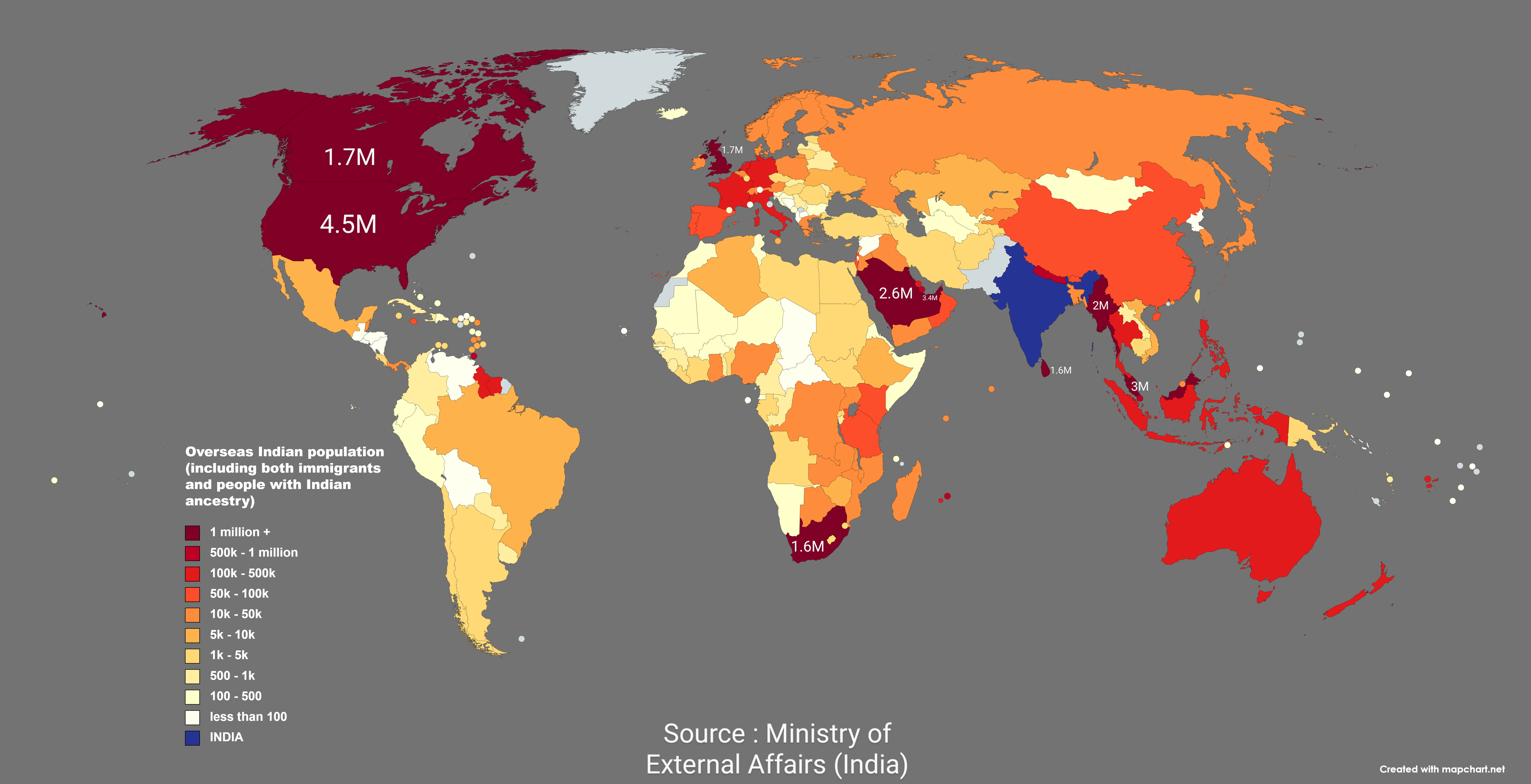 Sri Lanka count seems to be wrong. The majority of Tamils of Sri Lanka are native to Sri Lankan island, not part of ‘Indian Diaspora’.