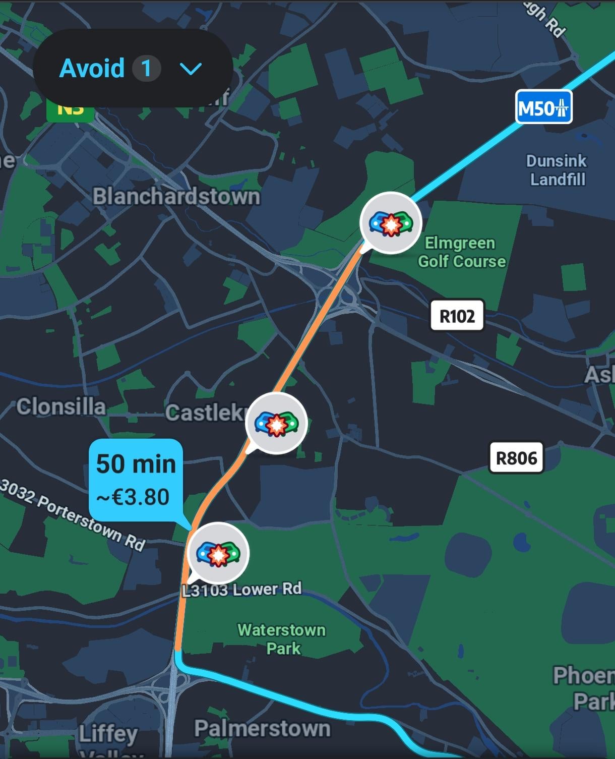 Tbf, Is that three different crashes or just the one crash reported by three different people? I’ve seen a few times in Galway on the dual carriageway when there’s a speed van people stick a new pin down when they pass it, so there’s three separate icons for one van
