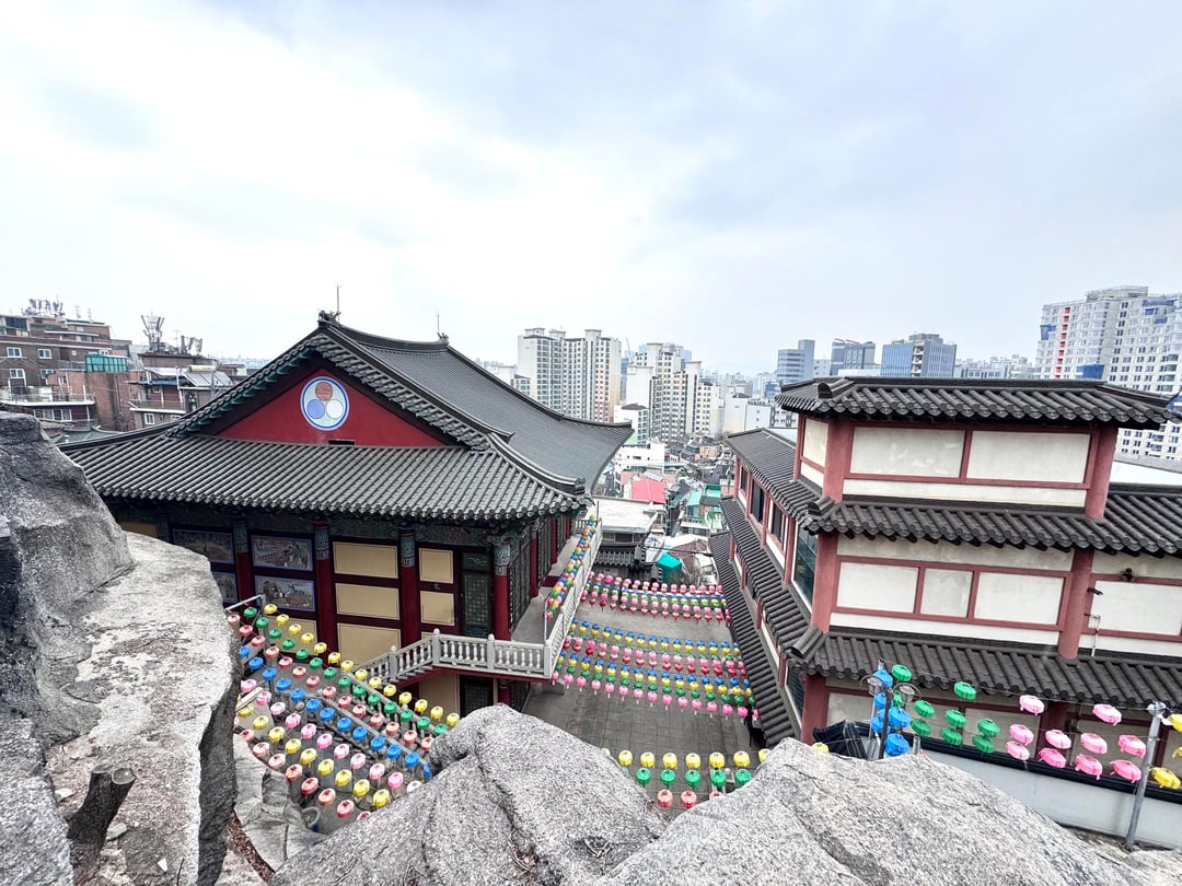 Ich habe einen schönen Tempelaufenthalt im Zentrum von Seoul besucht – sehr leicht von der U-Bahn-Station Dongmyo zu erreichen.