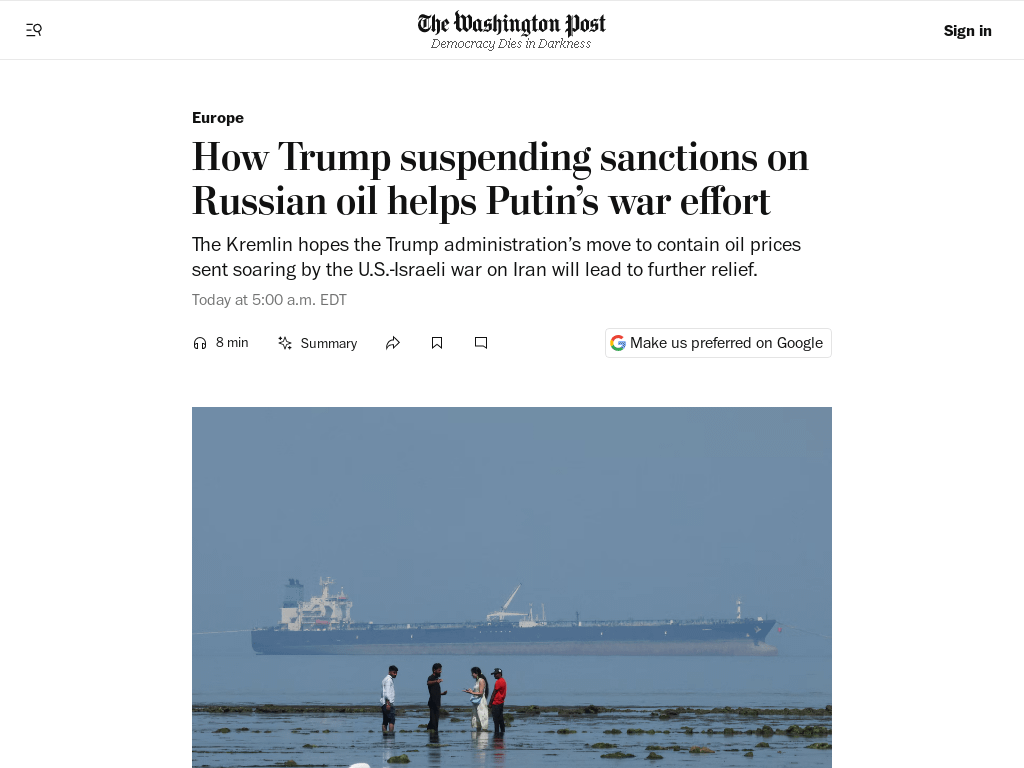 Wie Trumps Aussetzung der Sanktionen gegen russisches Öl Putins Kriegsanstrengungen unterstützt