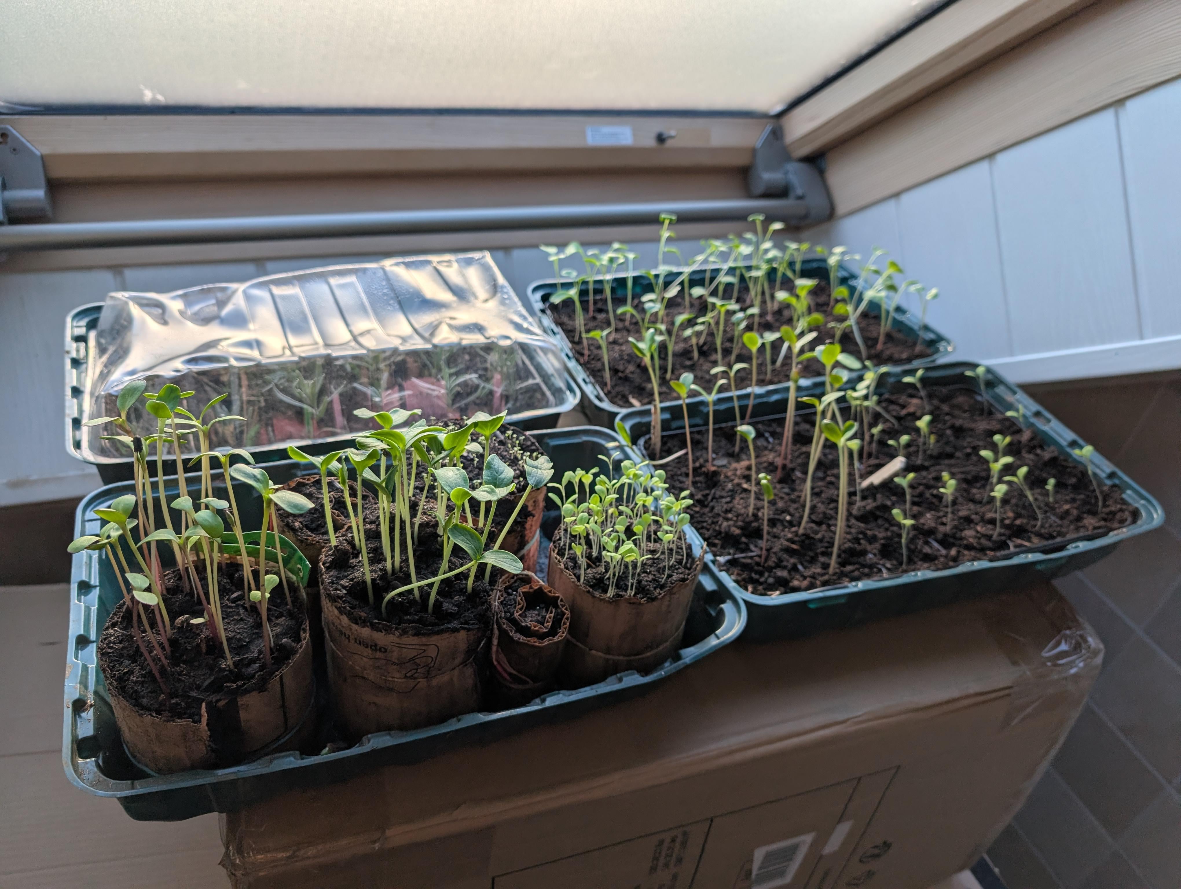 Ich verzweifel nun schon das zweite Jahr. Was man hier sieht sind Gurken, Kopfsalat, Radieschen und Sonnenblumen, die ich vor einer Woche gesät habe. Normale Pflanzerde ohne Dünger.