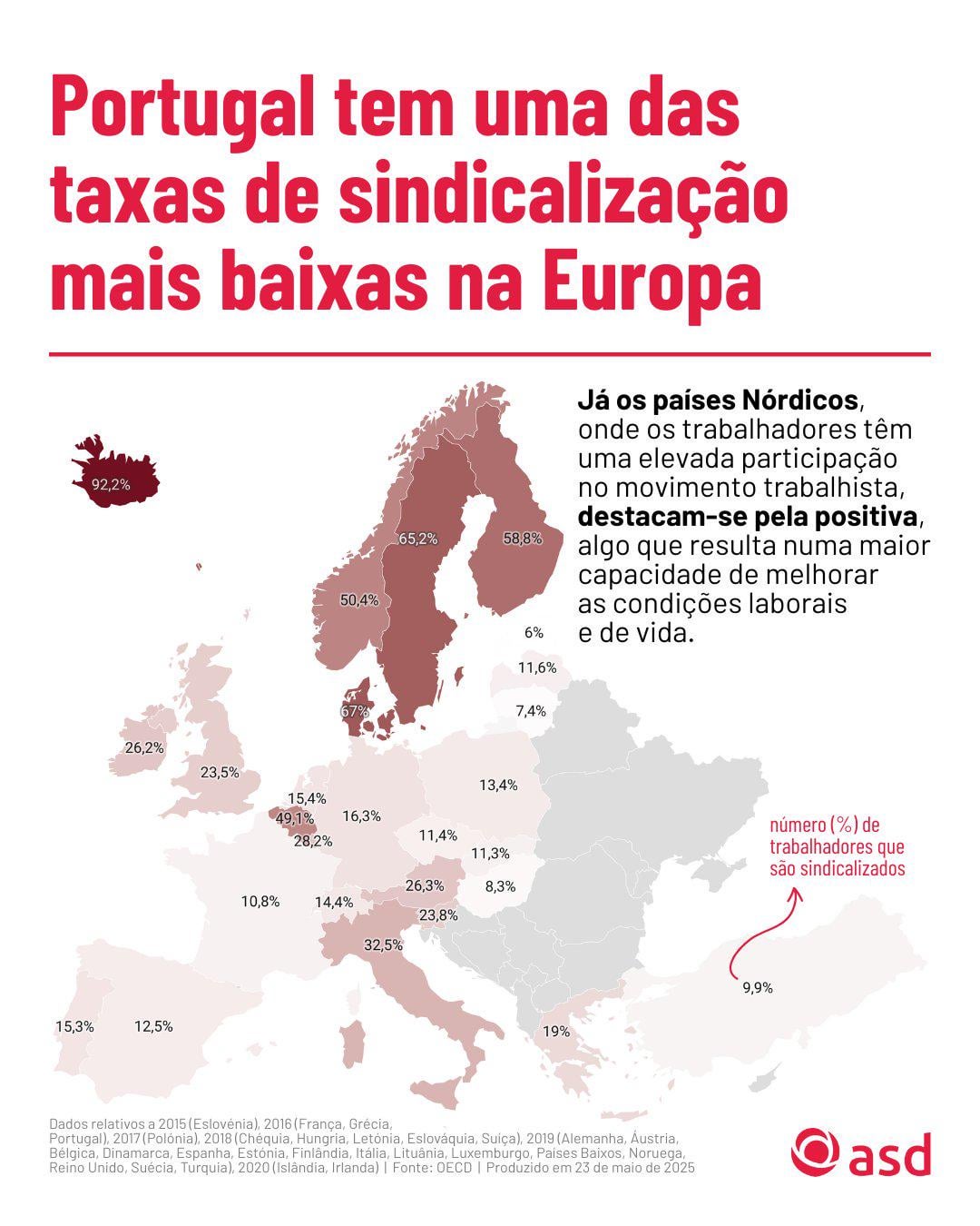 Se a nossa taxa de sindicalização é tão baixa comparada com a deles e eles têm muito mais direitos, isto devia dizer alguma coisa ao pessoal, mas tenho a impressão que vou ler comentários com argumentos fabulosos a dizer que não tem nada a ver
