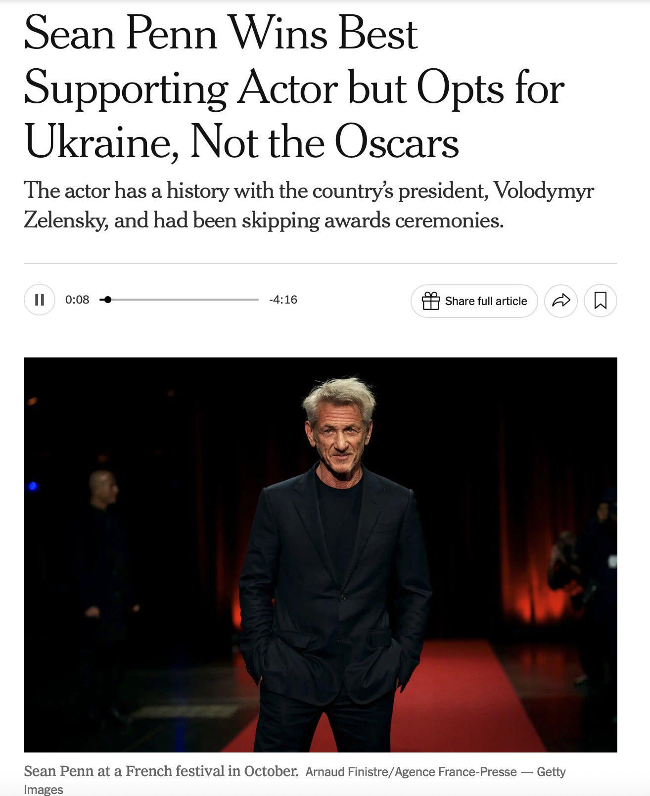 If you havent watched him in ‚One battle after another‘, I highly reccomend it, Penn was brilliant in that movie. Deserved award. And he is strongly pro-Ukraine.