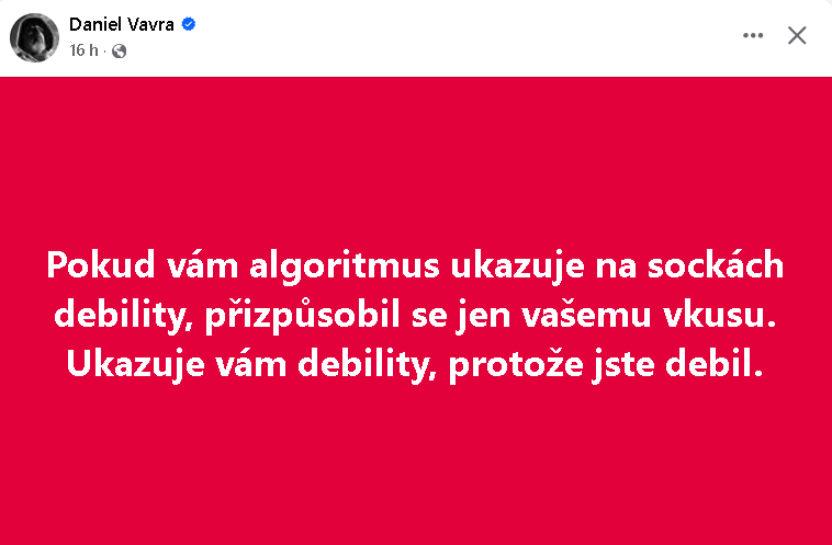 Asi proto mi jeho příspěvky algoritmus nikdy neukazuje.