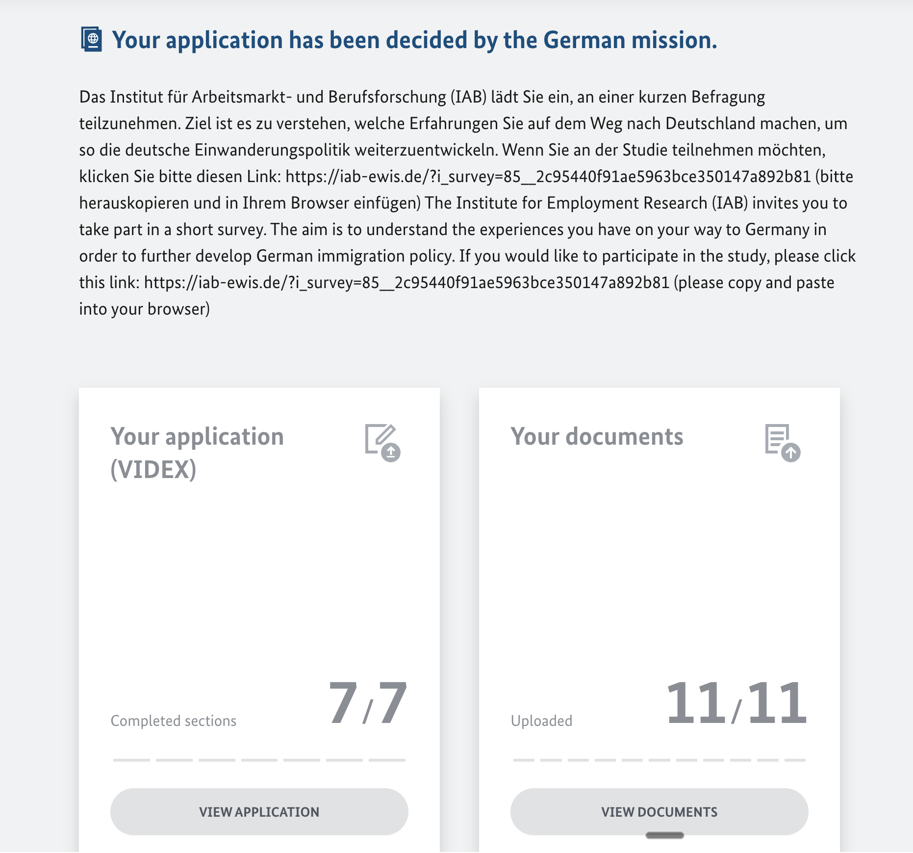 Heute (16. März) hat sich der Portalstatus in geändert "Entscheidung getroffen" + "Geschlossen" aber ich habe noch keine Abhol-E-Mail erhalten – überprüfter Posteingang und Spam, nichts.