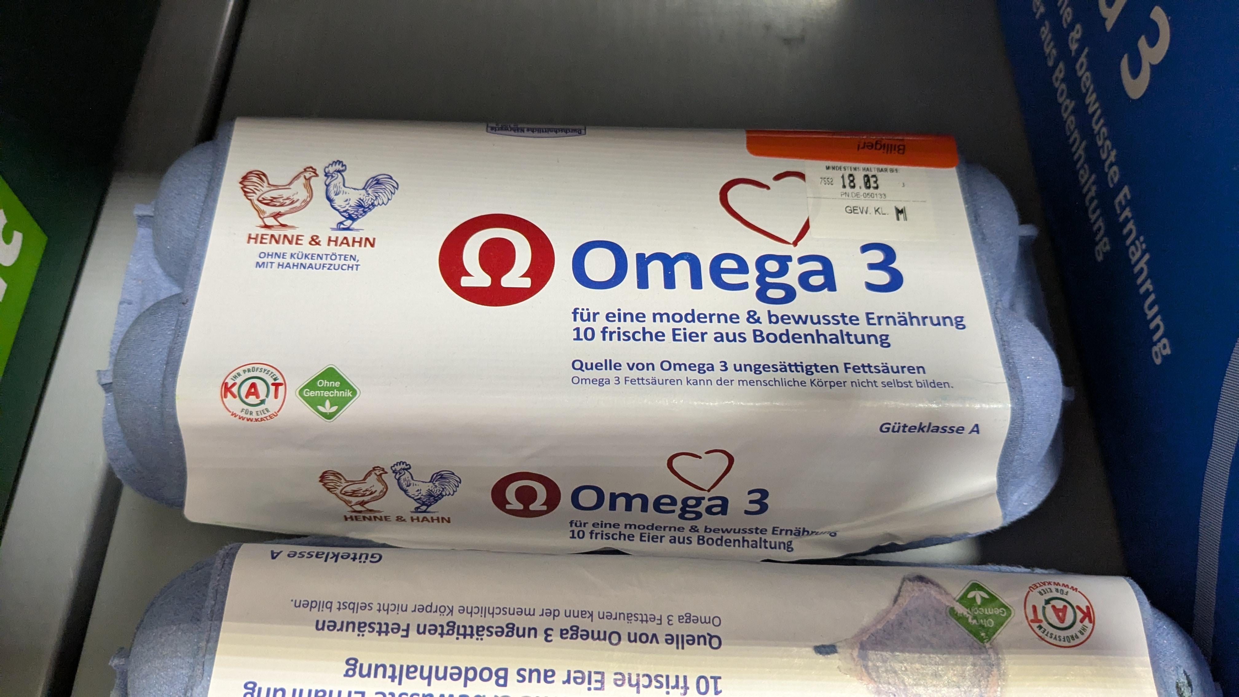 Ein Ei hat Omega 3, und angereicherte bzw. speziell gefütterte Hühner noch mehr. Nur liegt die Menge so bei 20% des täglichen Bedarfs. 1 Wallnusskern hat 10 mal so viel Omega 3