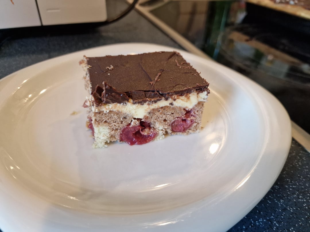 dieser schneewittchenkuchen (donauwelle) ist der knaller. beim backen bloß darauf achten, dass er keine minute zu lang drin ist (am besten stäbchenprobe). kuvertüre obendrauf empfehle ich 50 % schokolade. 300g Schokolade auf 100 ml Sahne