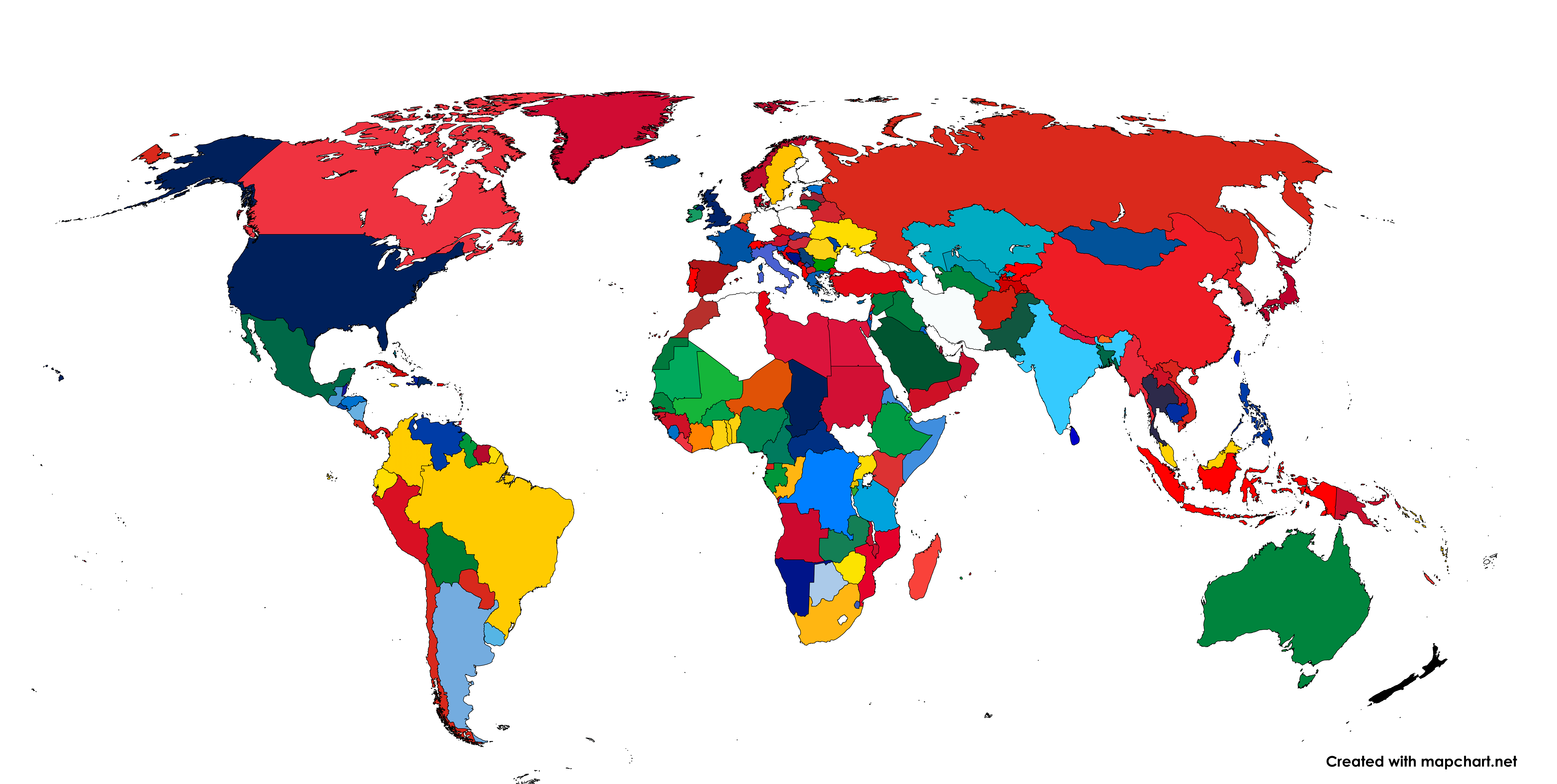 I’d like to add that this was a difficult exercise. While some countries were easy, like the Netherlands, other countries varied between two different colours and it was a judgement call to select one over the other. Some countries had no consistency whatsoever.