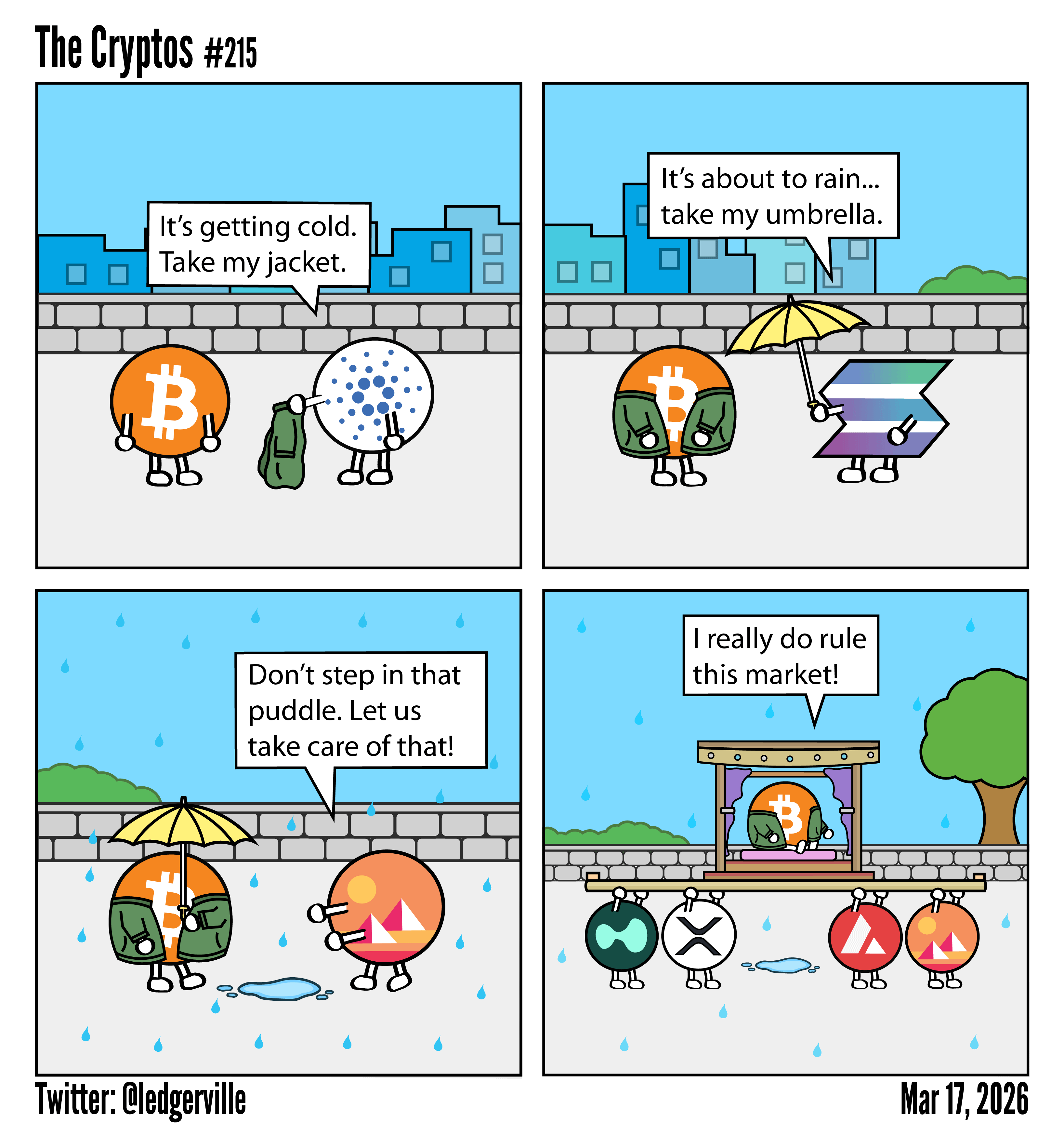 TerminatedPotato on 17.03.2026 2:52 a.m. Is this trying to imply that shitcoins do all the work and Bitcoin takes the credit? People that smoke dog shit come up with better memes than this.