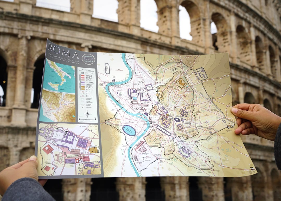 When the map was finished I brought it to Rome. Standing here really puts the scale of the city into perspective; it’s one thing to study these ruins on a screen, but seeing the actual stone and marble still standing after thousands of years is something else.