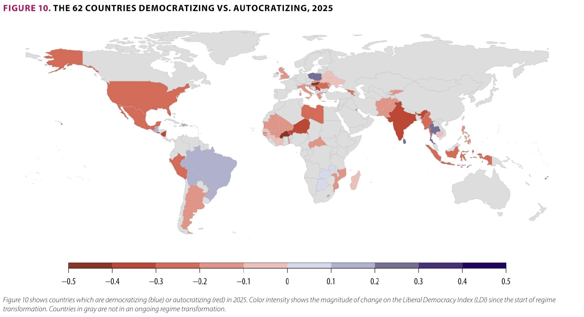 The org that put this together, V-Dem, really quantifies democratic optics rather than actual political power held by the citizenry.