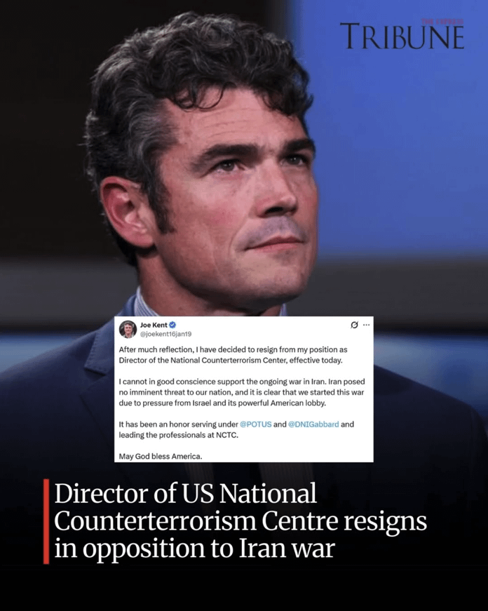 Einreichungserklärung zu Regel 10: Joe Kent, das National Counterterrorism Center (ernannt von Donald Trump), ist plötzlich zurückgetreten und erklärt, dass er den anhaltenden Krieg im Iran nicht länger guten Gewissens unterstützen kann. Er behauptete, Trump habe den Iran unter dem Druck Israels und israelischer Lobbygruppen angegriffen; Außerdem wiederholte er, was andere Geheimdienstmitarbeiter bereits zuvor erklärt hatten: Der Iran stelle keine unmittelbare Bedrohung für die Vereinigten Staaten dar.