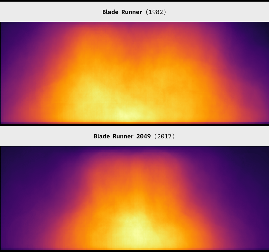 It’s also interesting how with blade runner you see two areas of activity, suggesting two people in a frame interacting. Could just be a directing style for that movie, or maybe movies started using more frequent cuts to avoid having to include two people in a shot, or for some other reason.