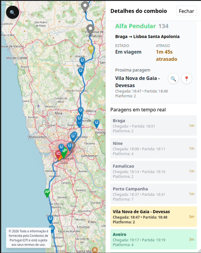 Mete os marcadores a mexer em tempo real (não acredito que a CP disponibilize essa informação mas era muito bom).
