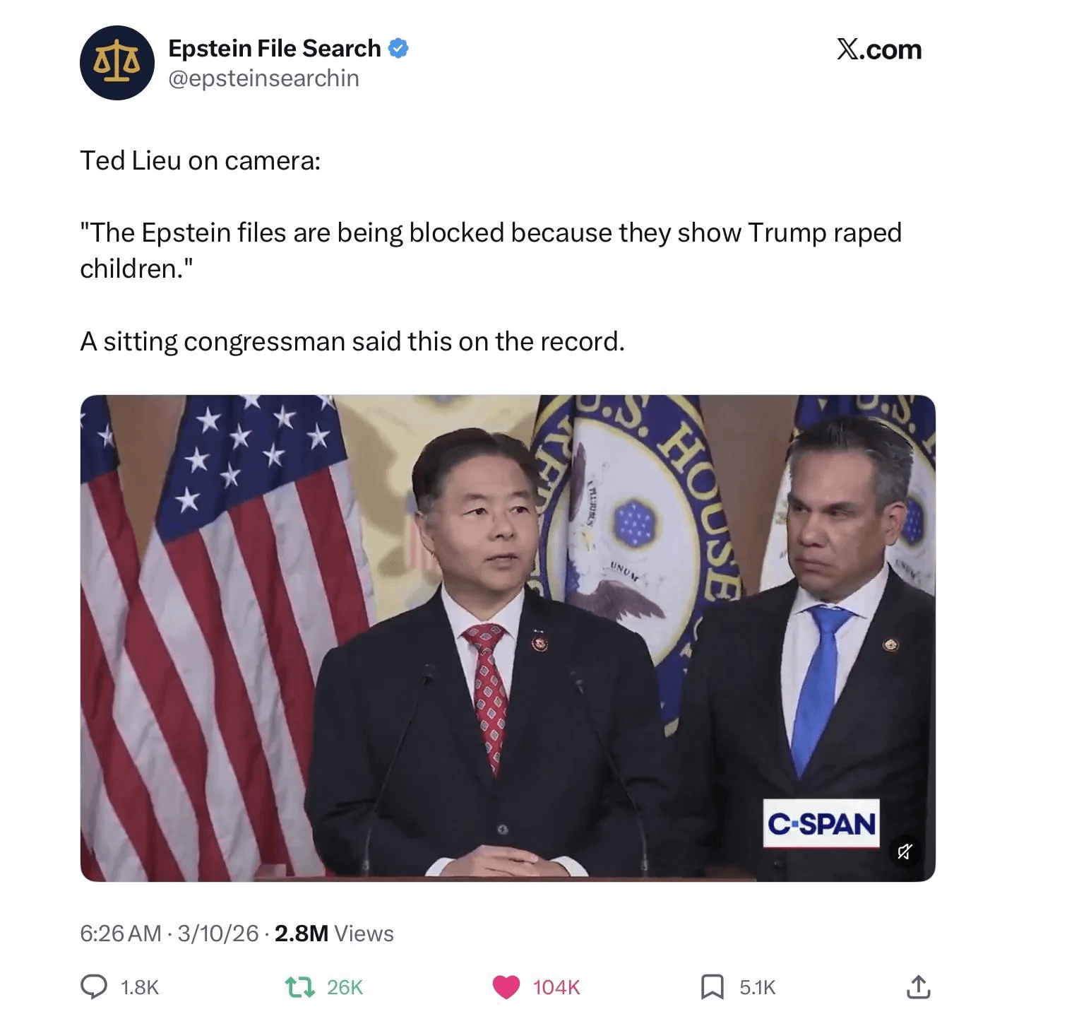 This is highly irresponsible of a thing for him to say. Politicians are just ugly all around. There’s a lot of did in those files and a lot of accusations and stories. It NEEDS to be investigated, yes, but taking it all at face value or political means is only going to guarantee shit gets buried even deeper.