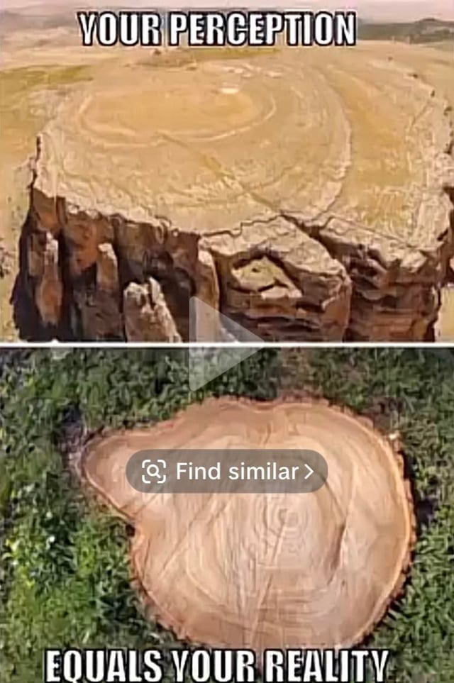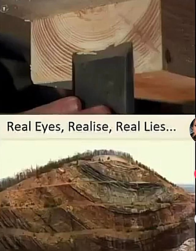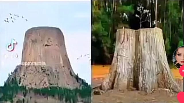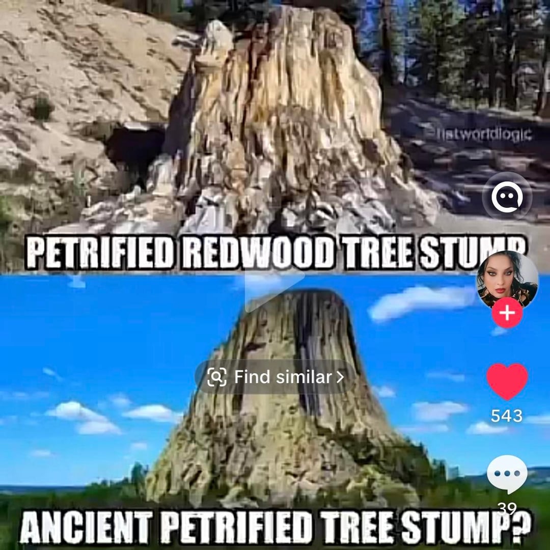 Image 1 (Mesa with a hole): This resembles a mountain formation like Devils Tower in Wyoming but with a giant hole in the middle. Geological features like this do not occur naturally in this way. This specific image is often used in „ancient tree stump“ conspiracy theories, where mesas are claimed to be the stumps of giant prehistoric trees. In reality, these are volcanic plugs or mesas formed by millions of years of erosion, and the hole shown here is a digital edit.