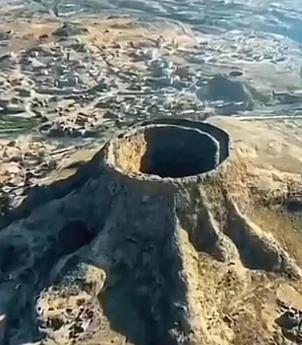 Image 2 (Mountain with a circular hole over a city): This image strongly resembles a type of AI-generated art that has recently become popular. These images often use tools like „ControlNet“ to embed hidden shapes—like spirals or circles—into landscapes and cityscapes. The perfectly circular hole in the mountain overlooking a town is not a documented real-world location and matches the aesthetic of AI-generated „spiral villages“ and „hidden pattern“ landscapes.