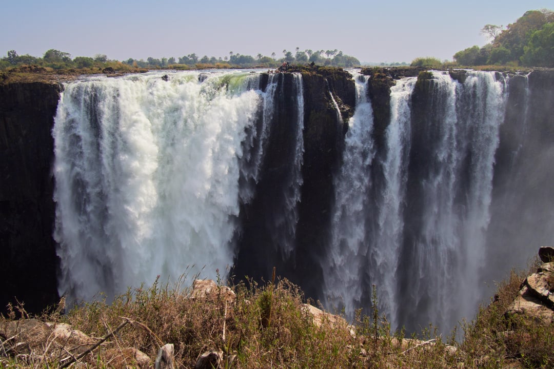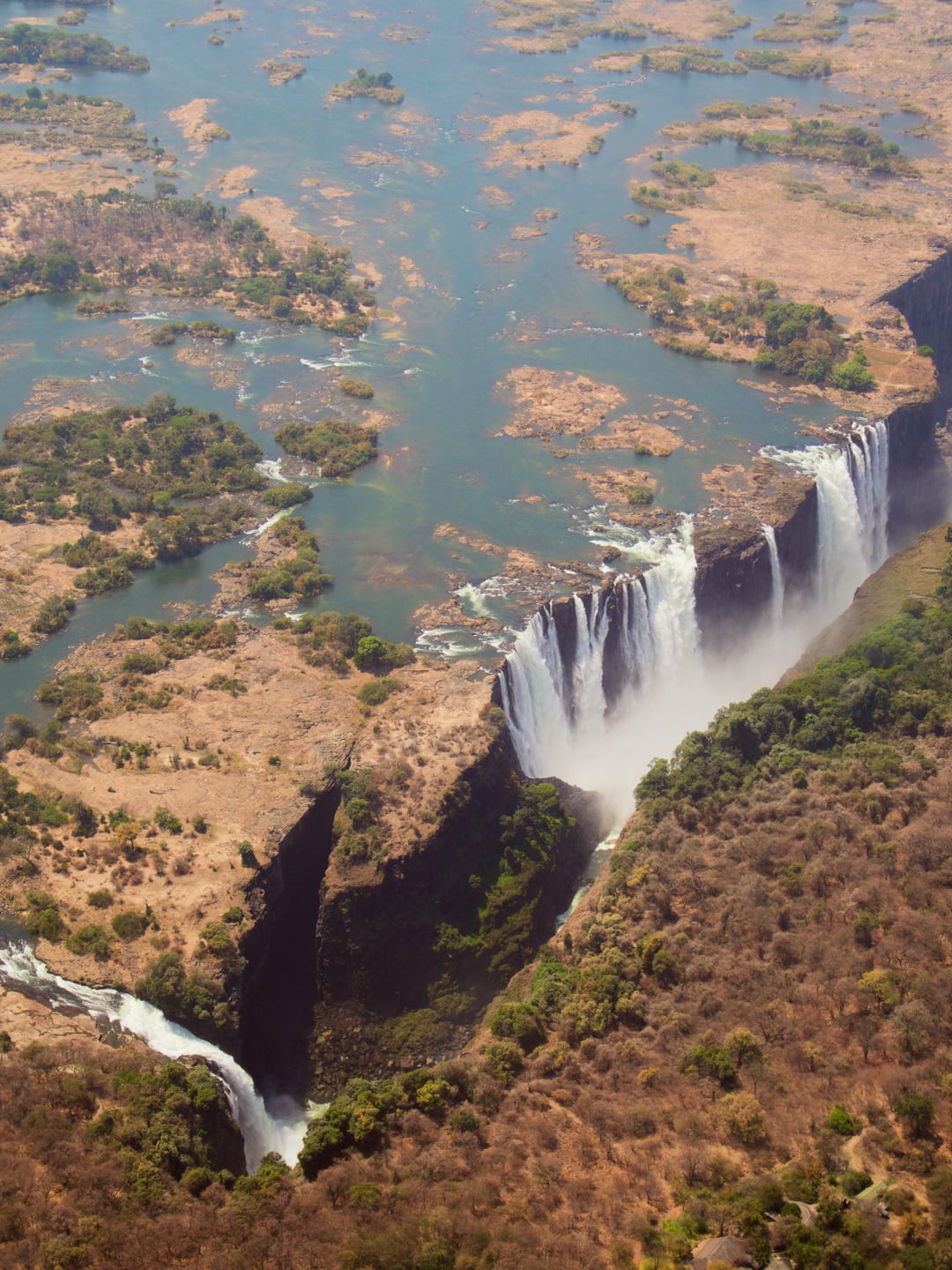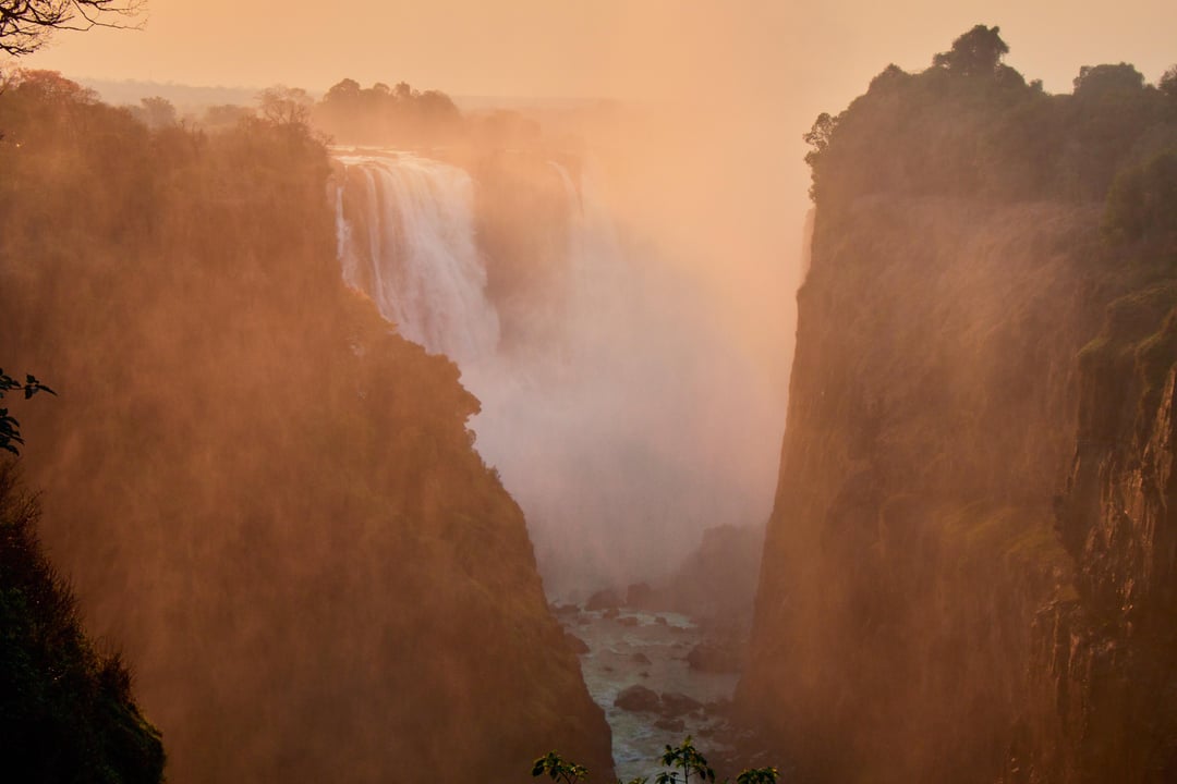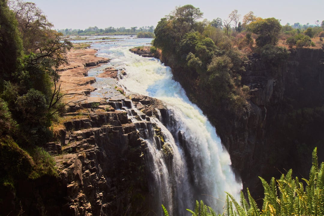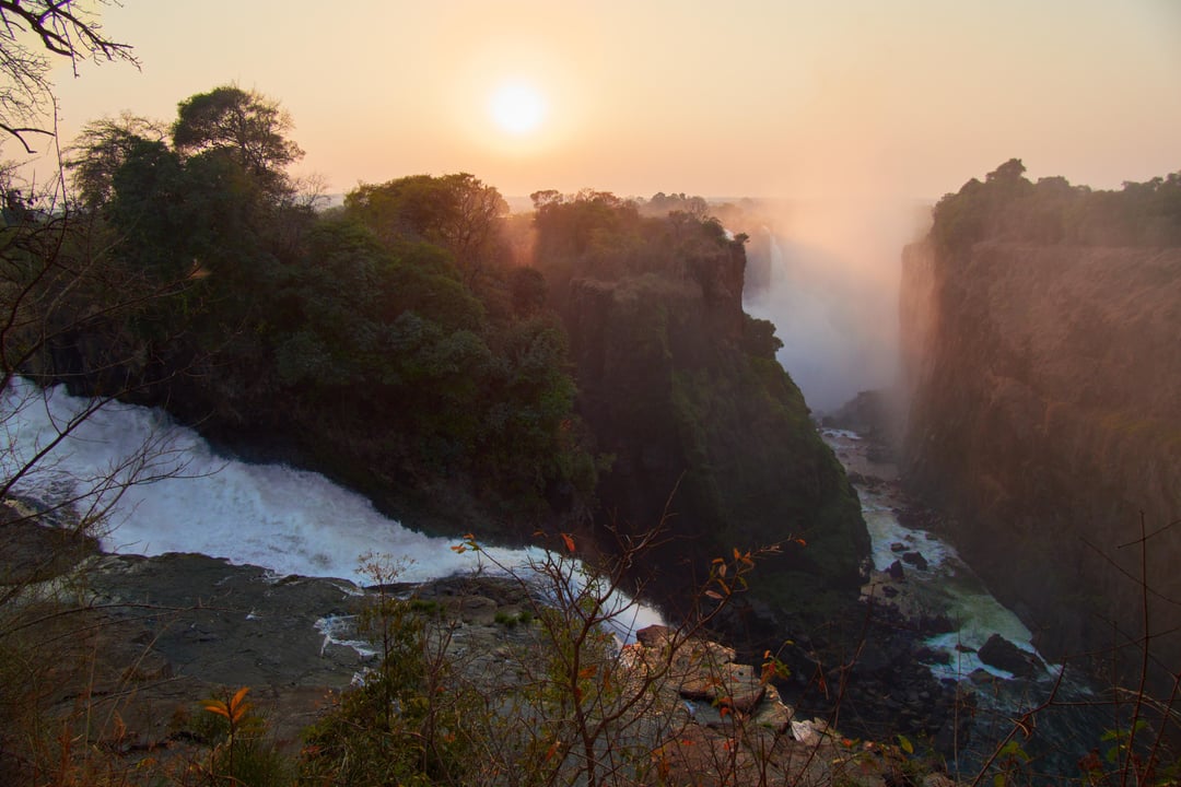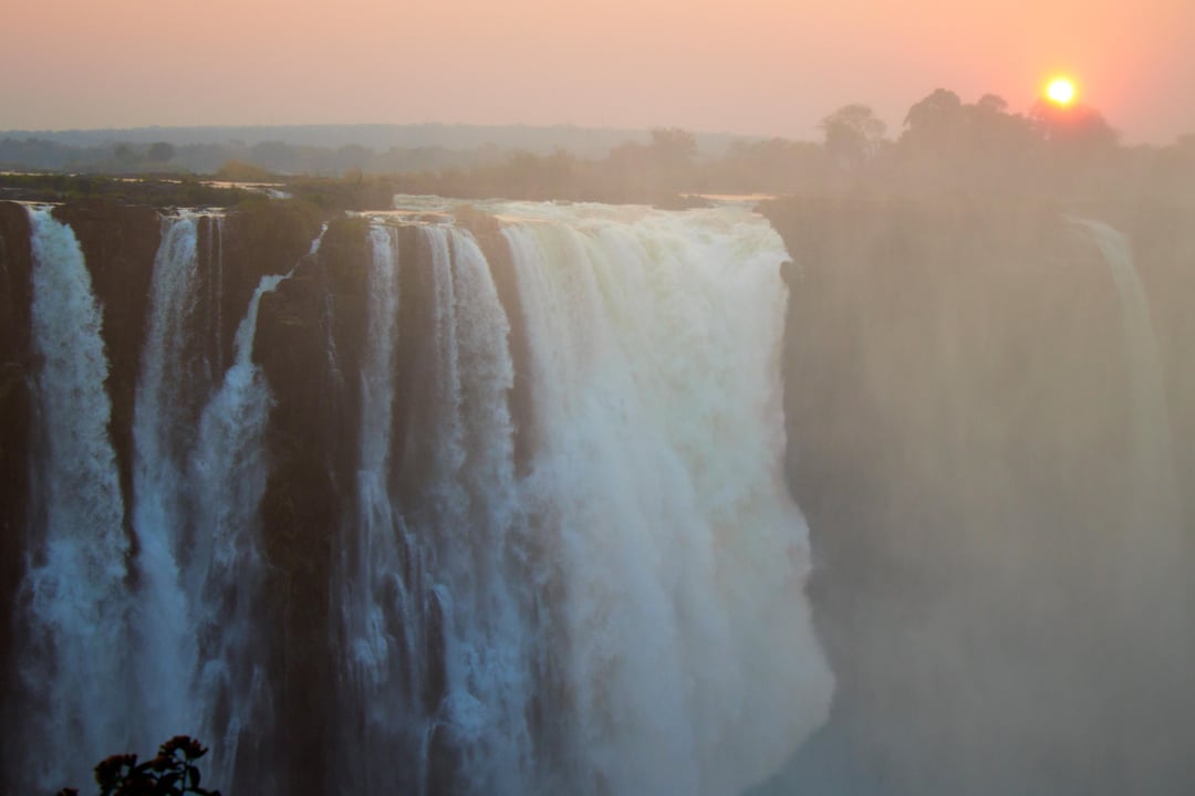 Mosi-oa-Tunya (smoke that rises) in the local language which is also the name of a Zambian national park that includes the portion of the falls in Zambia. Also known as Shungu Namutitima (bioling water).
