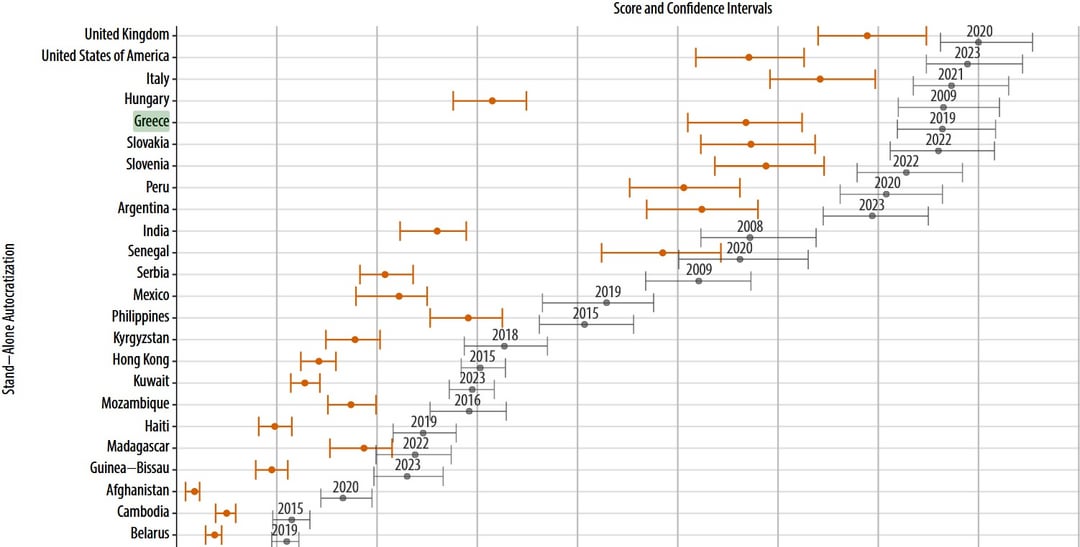 V-Dem-Institut: Griechenland gehört zu den Ländern, die am stärksten von der Autoritarisierung betroffen sind und am schnellsten zu einem Staat mit absolutistischen Merkmalen tendieren