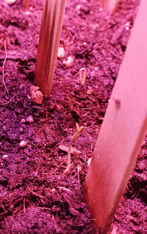 Danke an alle, die mir Tipps und Hilfestellung zur Tomatenaufzucht gegeben haben. Die ersten paar kleinen Pflänzlein stoßen gerade – 5 Tage nach dem Aussäen – durch die Erde. Mal schauen, wie viele es noch werden. Bisher nur von 3 der 6 Tomatenarten, aber es ist ja noch sehr früh.