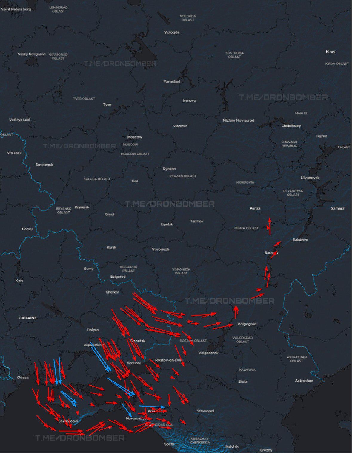 On the one hand, the routing around Crimea indicates there is still enough air defense there to make the longer trip worthwhile. Given all the air defense destruction we see it makes me a little sad that’s true still. On the other hand, the fact that they have drones with the range to go around and still hit targets far to the east more than makes up for that