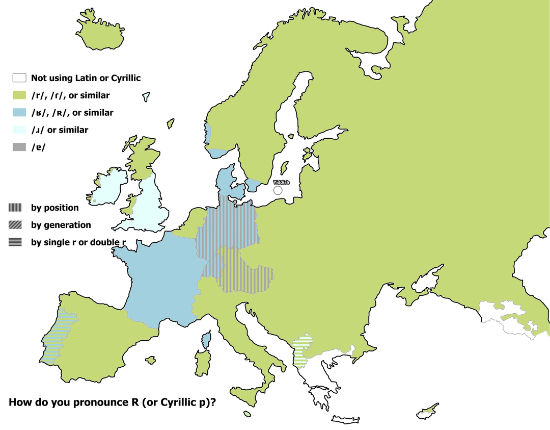 english R varies by position, and has a lot of regional variations too.