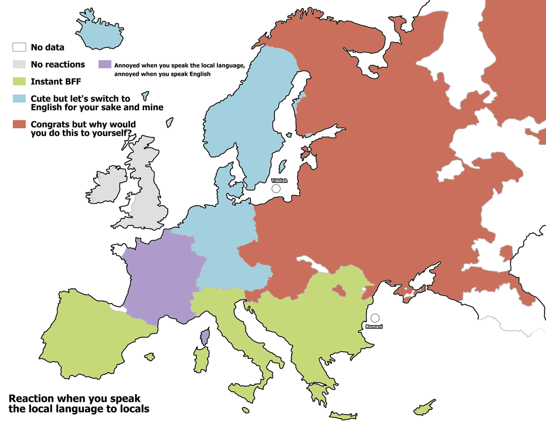 I dislike how the Russian claim to Ukrainian national territory since their invasion started 12 years ago apparently influenced the outlines of the Russian and Ukrainian languages in these maps.