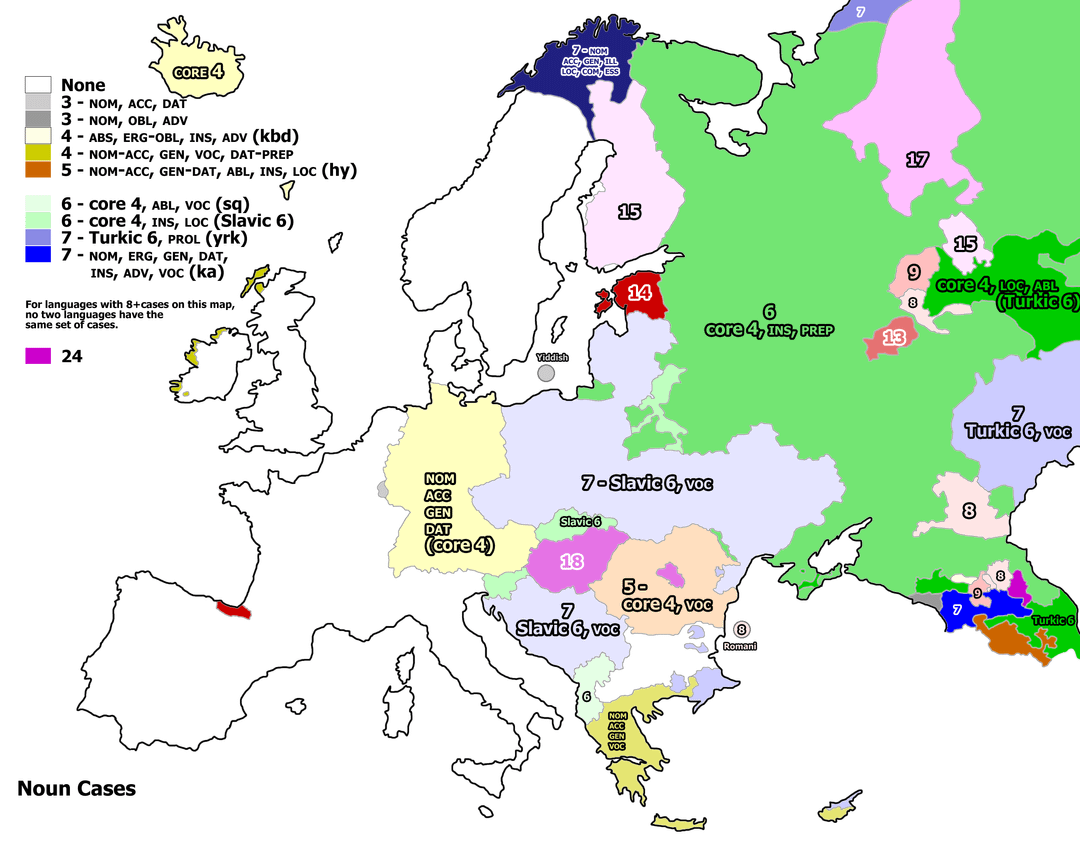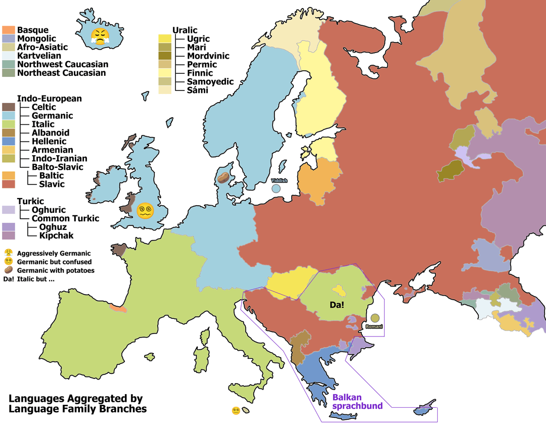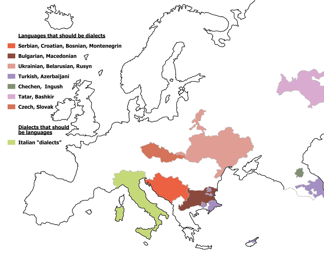 South Slavs should be the same colour. Spain has more language and dialect varieties.