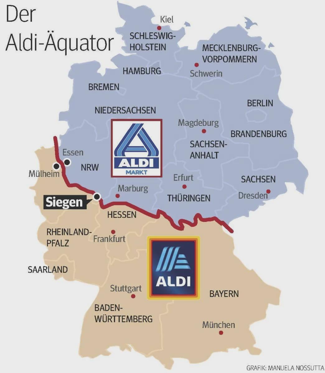 Siegen has both Aldis because it absorbed Eiserfeld, who had an Aldi Süd, in 1975