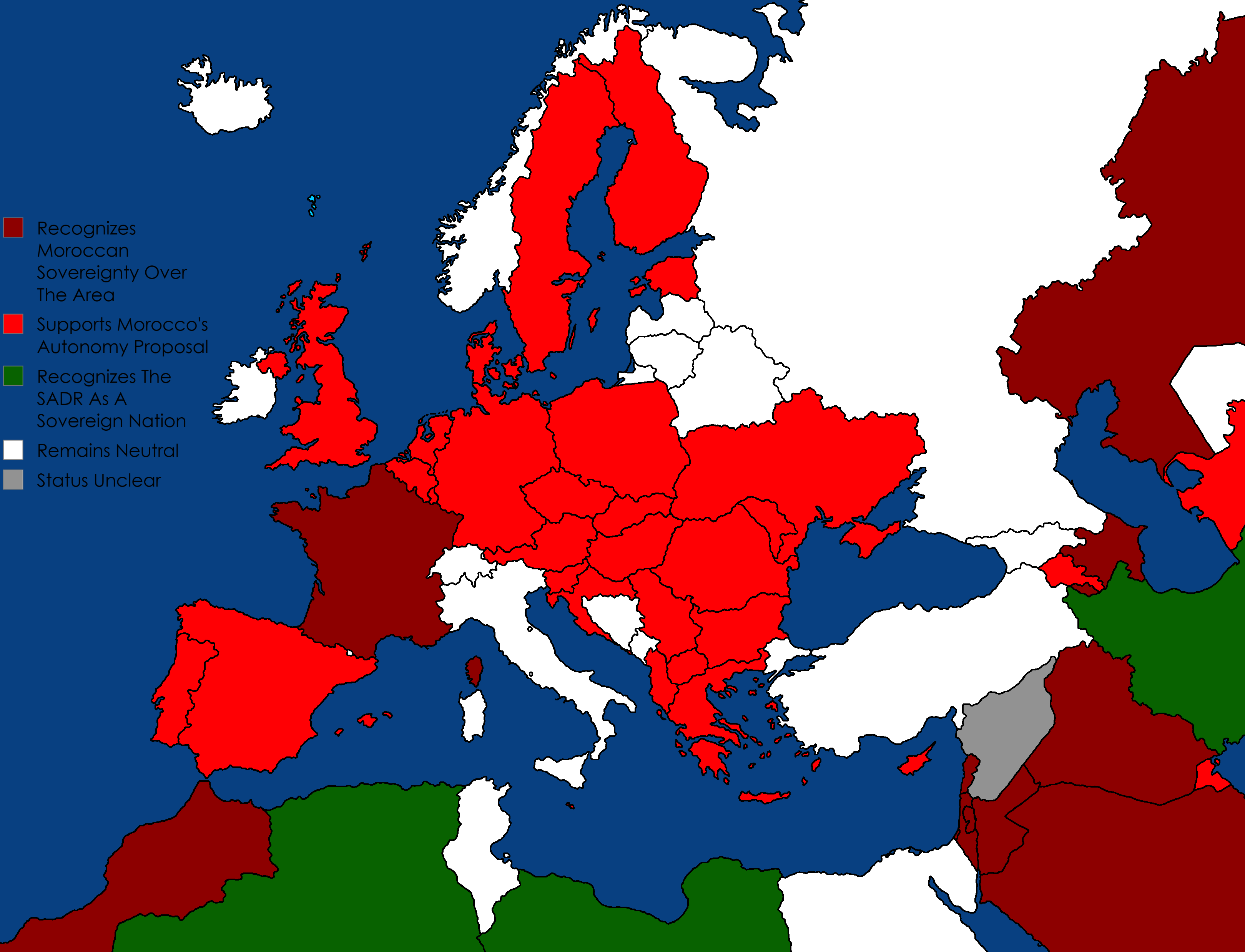 Recognizes the SADR As A Sovereign Nation: Recognizes the Sahrawi Arab Democratic Republic (SADR) as a sovereign nation (even diplomatic relations)