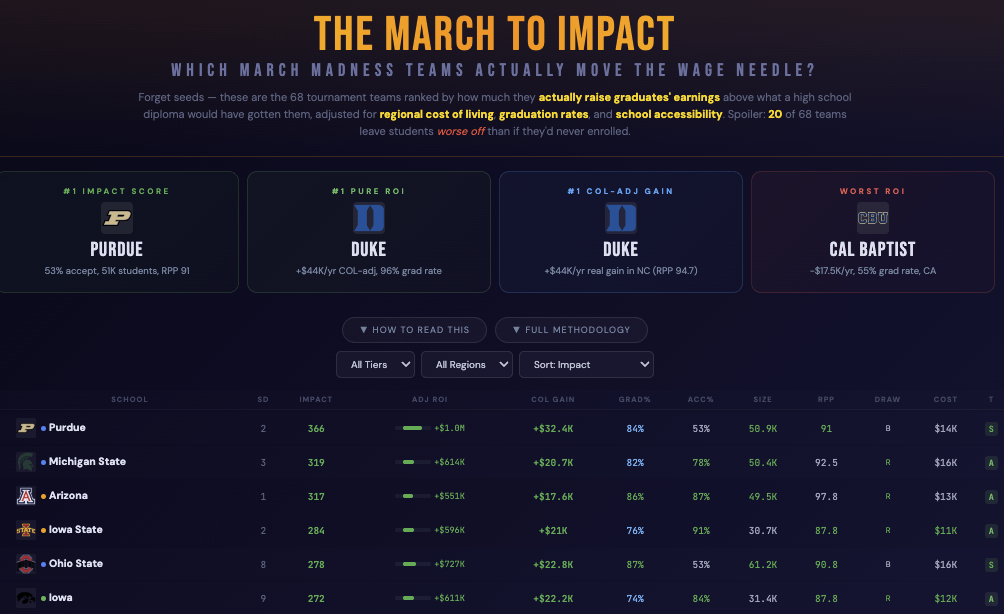 **Interactive version:** [https://adil1248.github.io/march-madness-roi-2026/](https://adil1248.github.io/march-madness-roi-2026/)