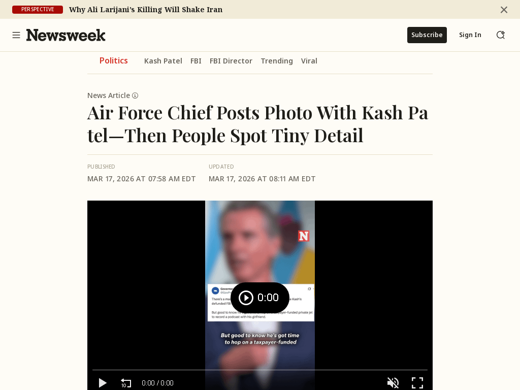 Luftwaffenchef veröffentlicht Foto mit Kash Patel – dann entdecken die Leute winzige Details