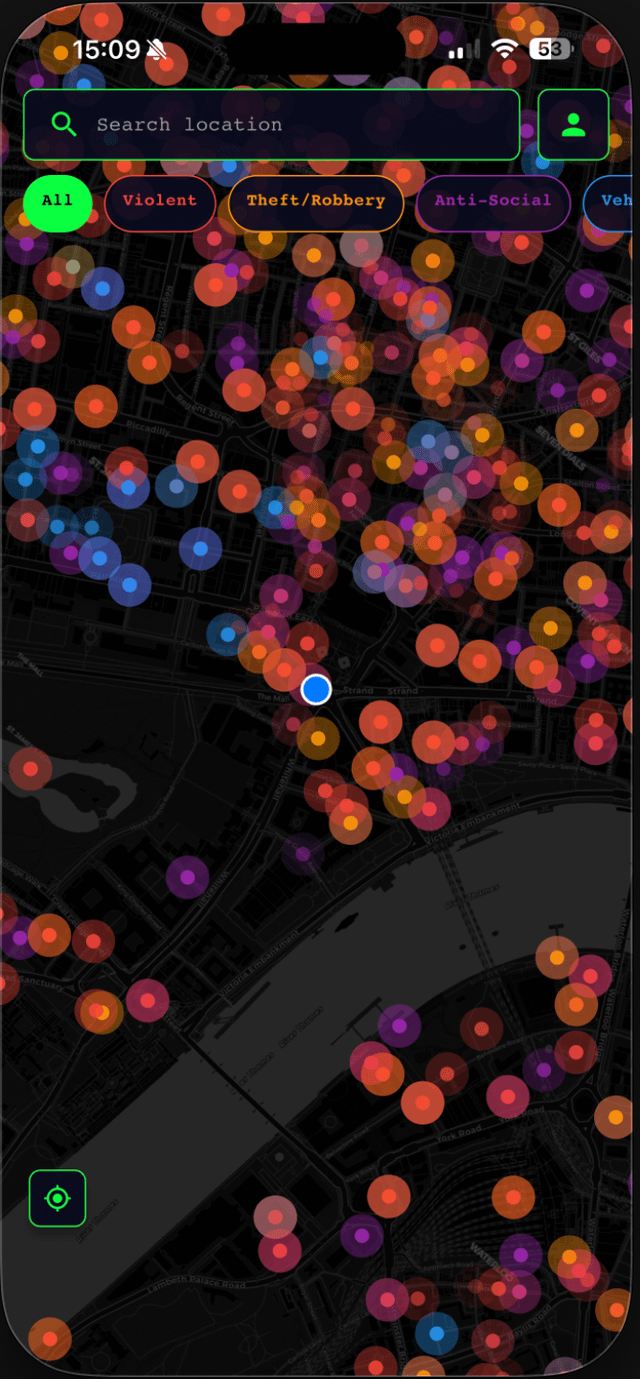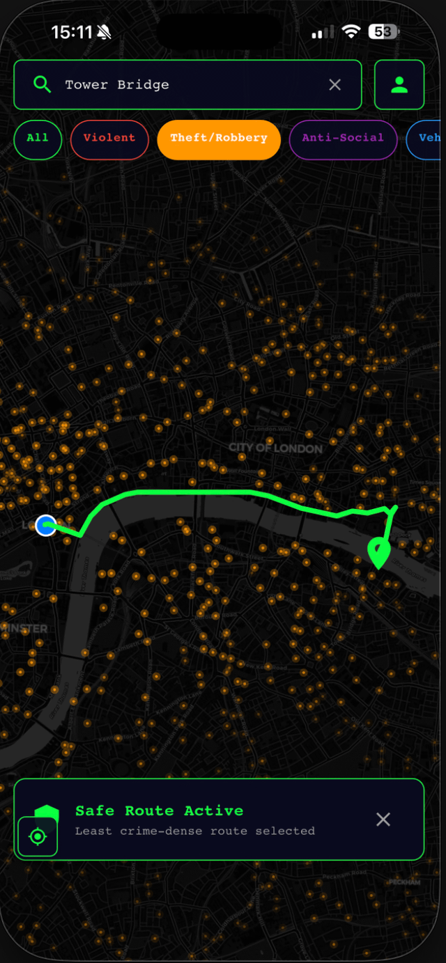 Source: SFPD Open Data, Chicago Data Portal, UK Police API | Tool: Custom iOS app