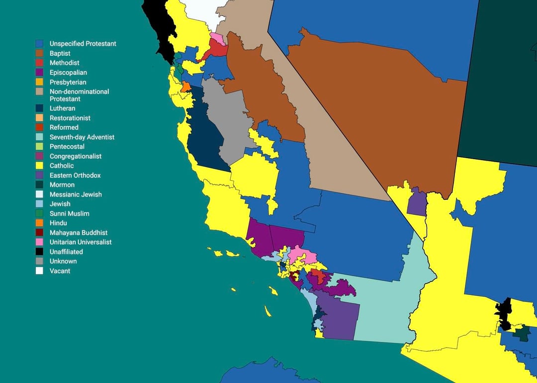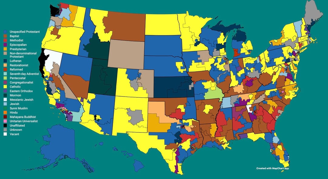 I feel as though this map suggests diversity where there really isn’t much; the vast majority of Congress are various flavors of Christian. Almost all Christian sects are way more similar than people tend to realize.