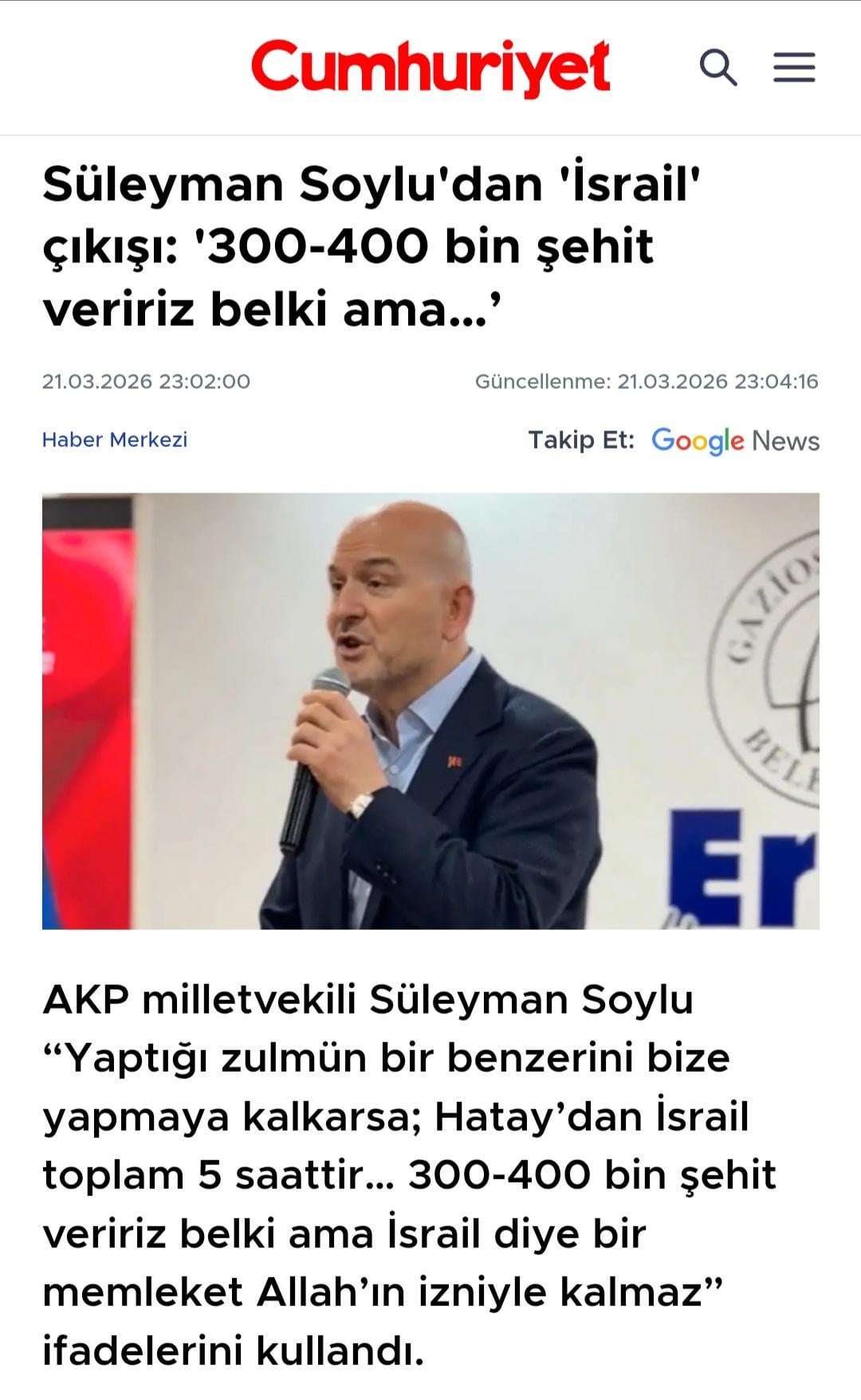 Beştepe’den açıklama: „Gazamız mübarek olsun. Hatay’dan yola çıktık 5 milyon askerle. Tank top uçak herşeyimizle İsrail’i yokedeceğiz inşallah.“