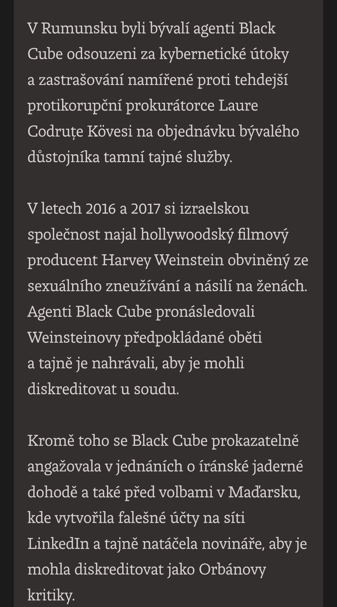 +Black Cube (tá Izraelská spoločnosť) je tým celkom známa