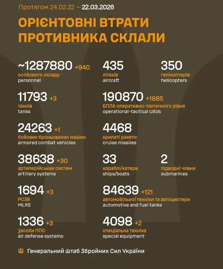 [Daily stats](https://www.reddit.com/r/RussianLosses/comments/1s0ctfp/estimated_russian_losses_from_24022022_to/)