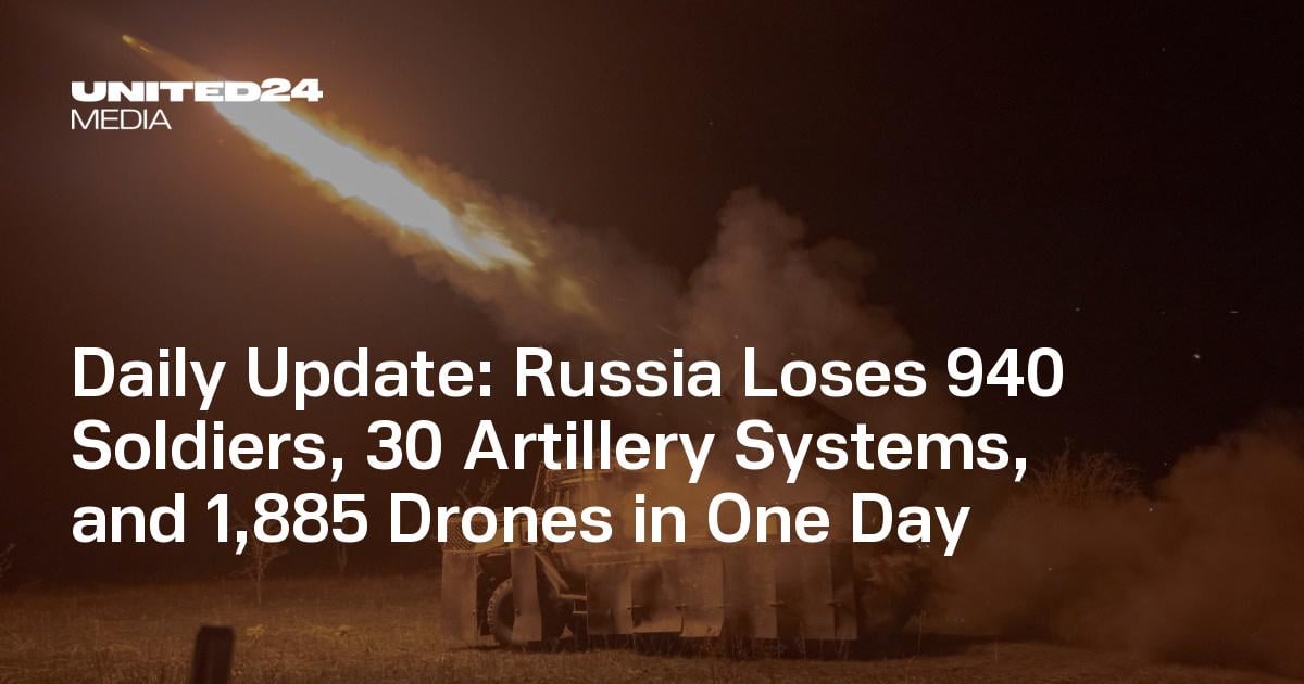 Tägliches Update: Russland verliert an einem Tag 940 Soldaten, 30 Artilleriesysteme und 1.885 Drohnen