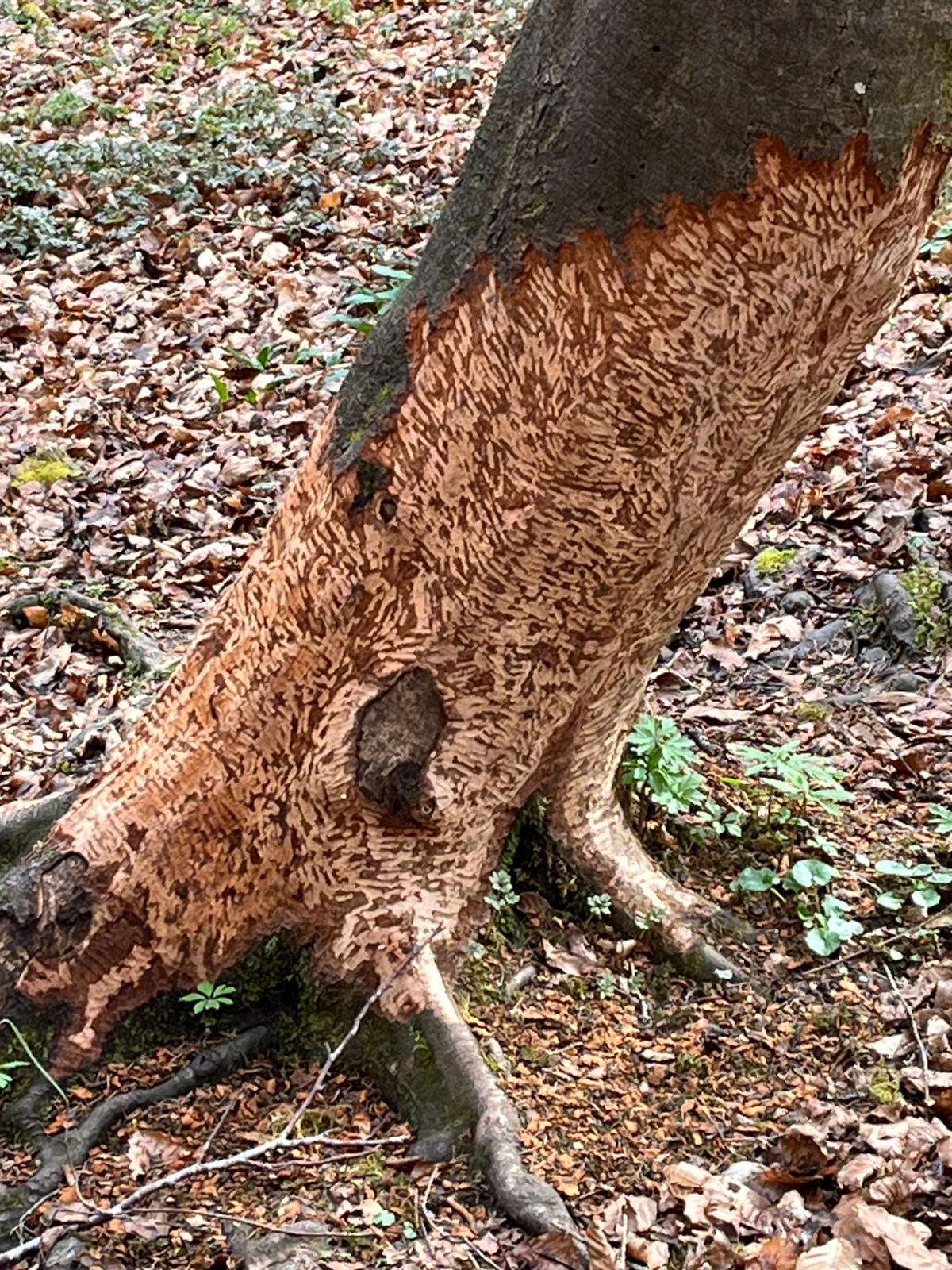 Definitiv Bissspuren. In Gewässernähe Bieber ansonsten wüsste ich nicht ob Reh oder Rotwild so stark Rinde fressen.