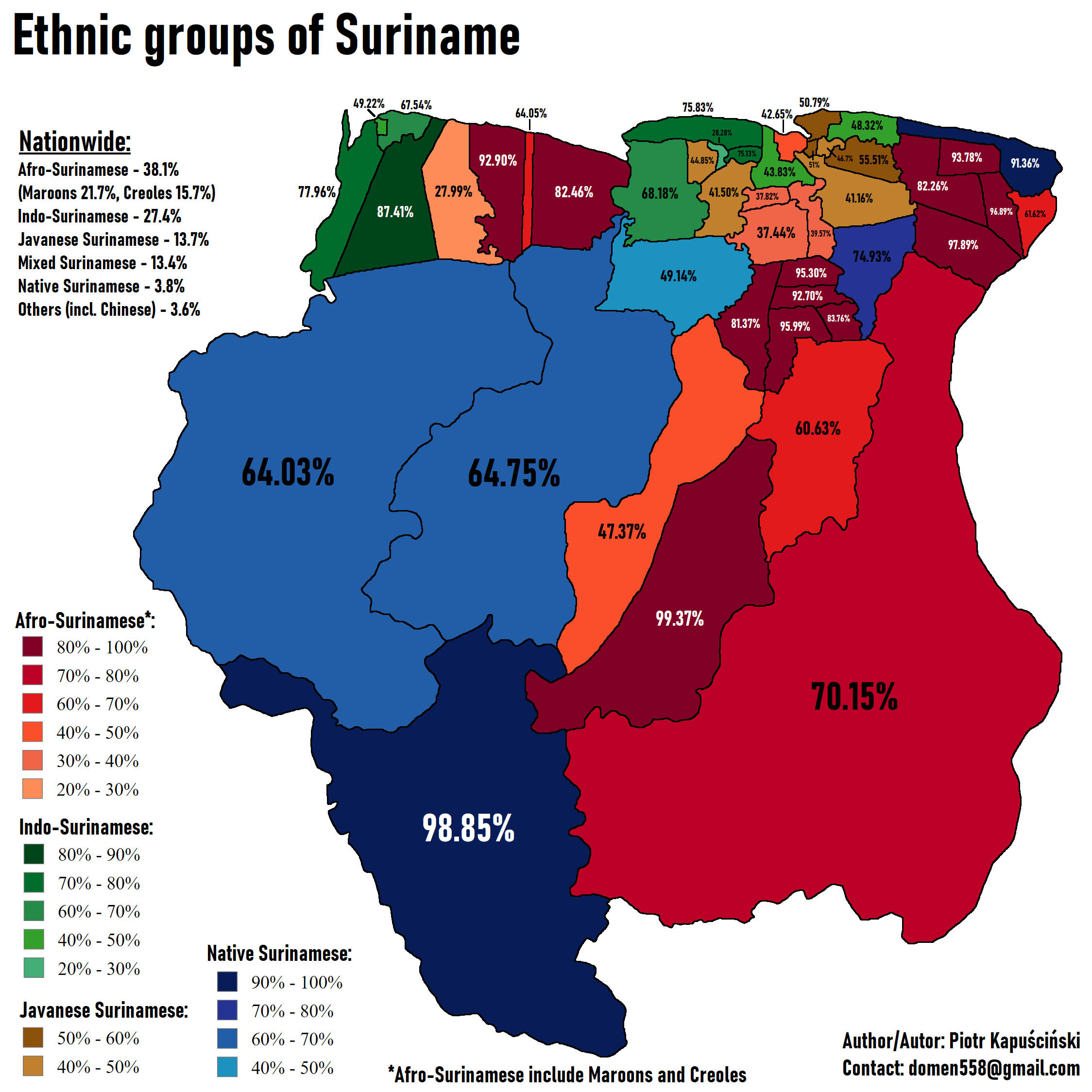 interesting map, what’s the reason for the west/east divide between native and afrosurinamese?