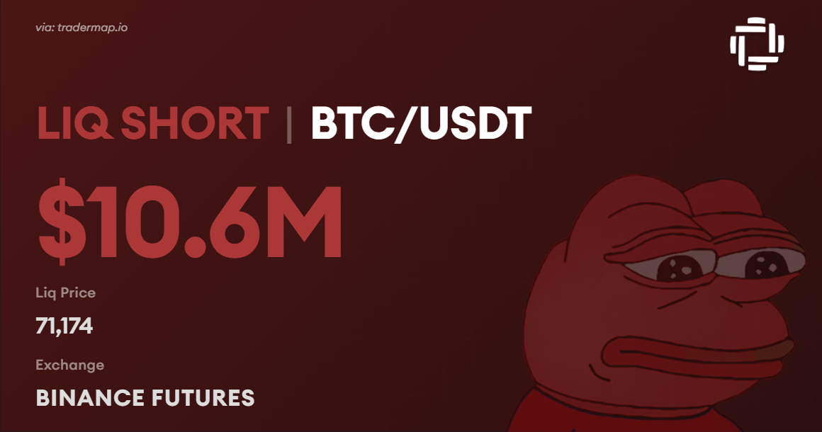 Hat irgendjemand gerade diese Volatilität gesehen? BTC sprang in einer einzigen Kerze von 68.000 auf 71.000, und während dieser Bewegung wurde ein Wal, der einen BTC-Leerverkauf im Wert von 10 Millionen US-Dollar hielt, liquidiert.