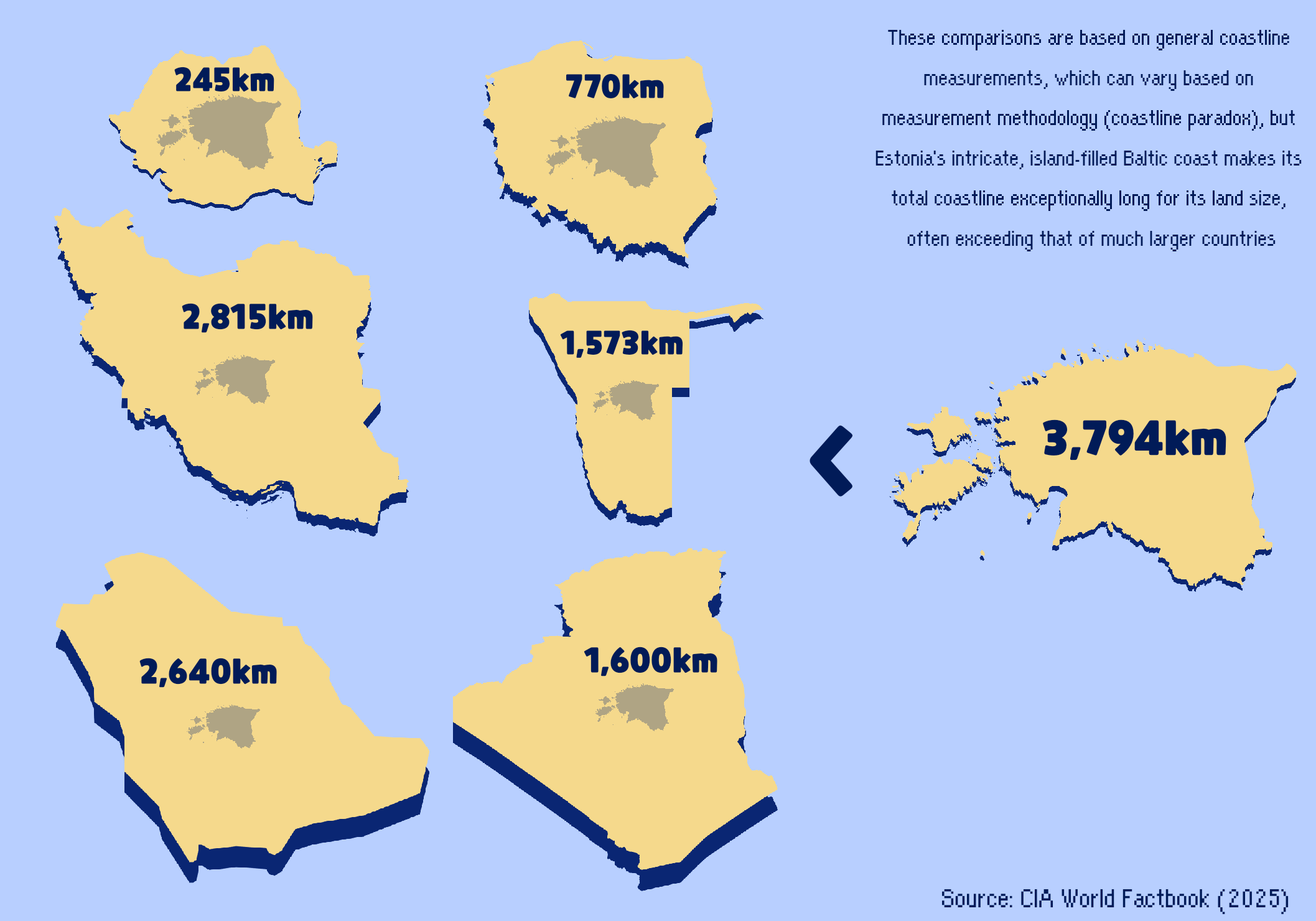 unnamed countries that have coastline and are bigger than estonia, but their coastlines are shorter *