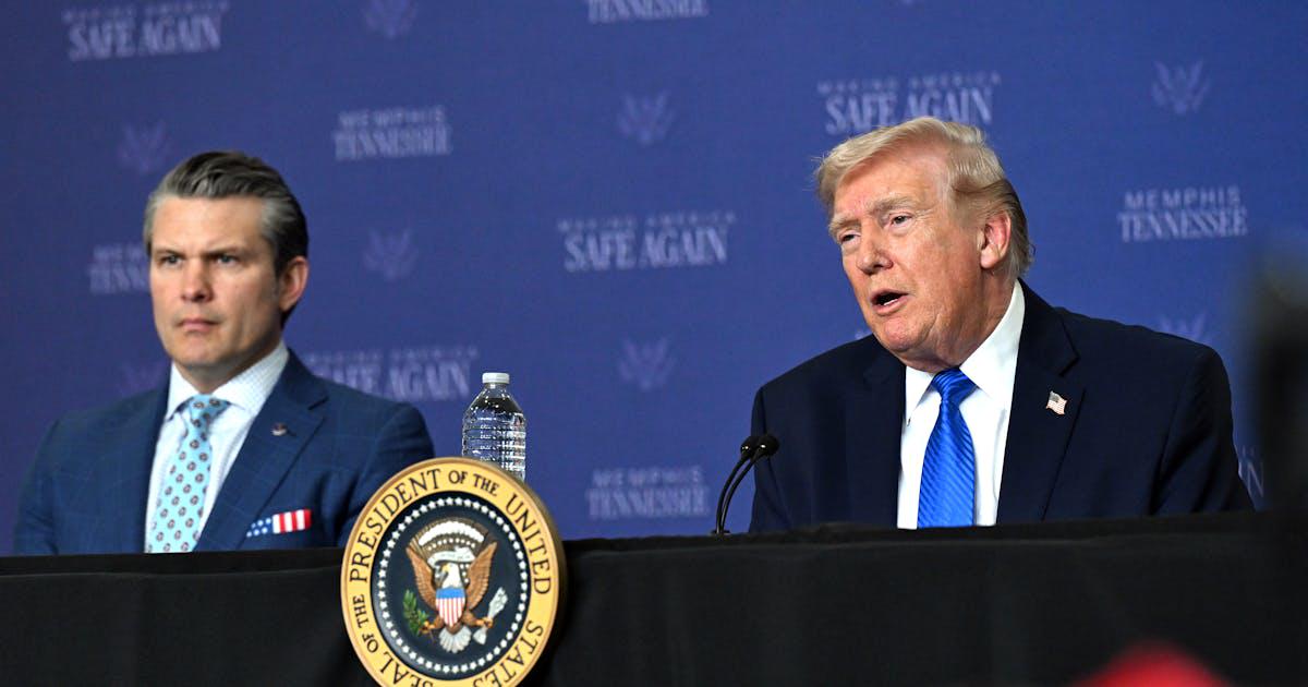 >“I called Pete, I called General Caine, I called a lot of our great people … and I said, ‘Let’s talk. We got a problem in the Middle East. We have a country … that for 47 years has been a purveyor of terror. And they’re very close to having a nuclear weapon. We can keep going and get that 50,000 up to 55 and 60, there’s no end. Or we could take a stop and make a little journey into the Middle East, and eliminate a big problem,’” Trump said Monday at an event in Memphis.