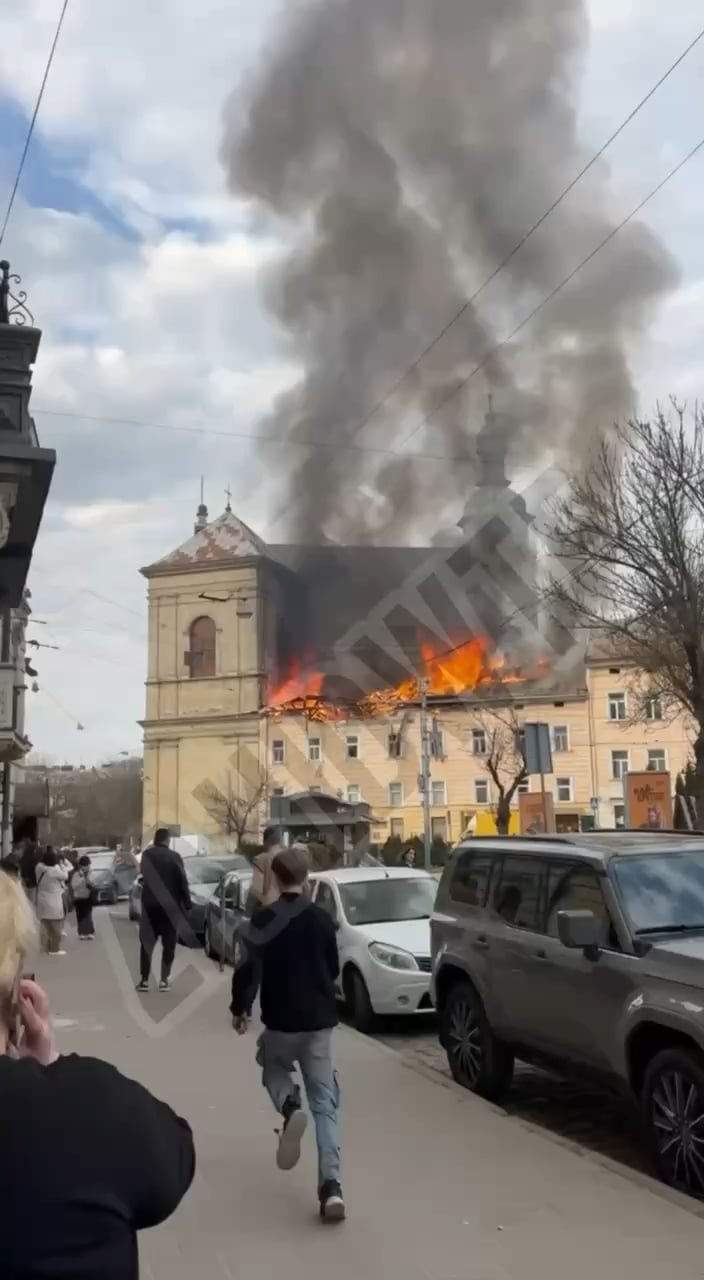 Ein UNESCO-geschütztes Gebäude steht derzeit in Flammen, nachdem eine russische Shahed-Drohne (Geran) das Gelände in Lemberg angegriffen und getroffen hat – März 2026